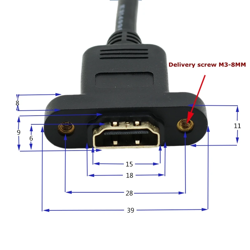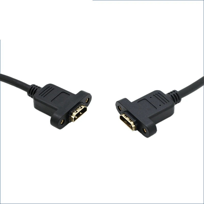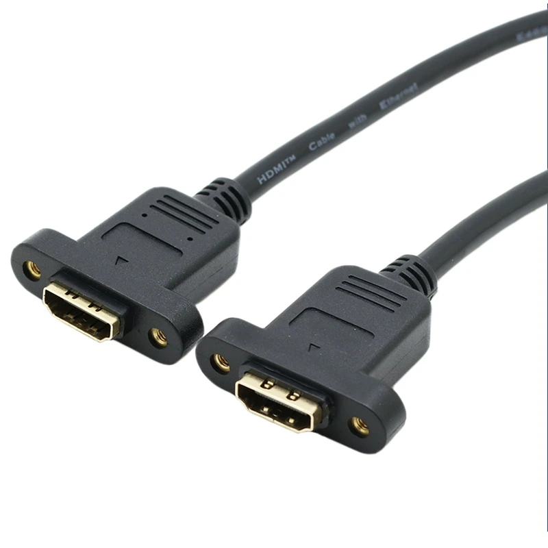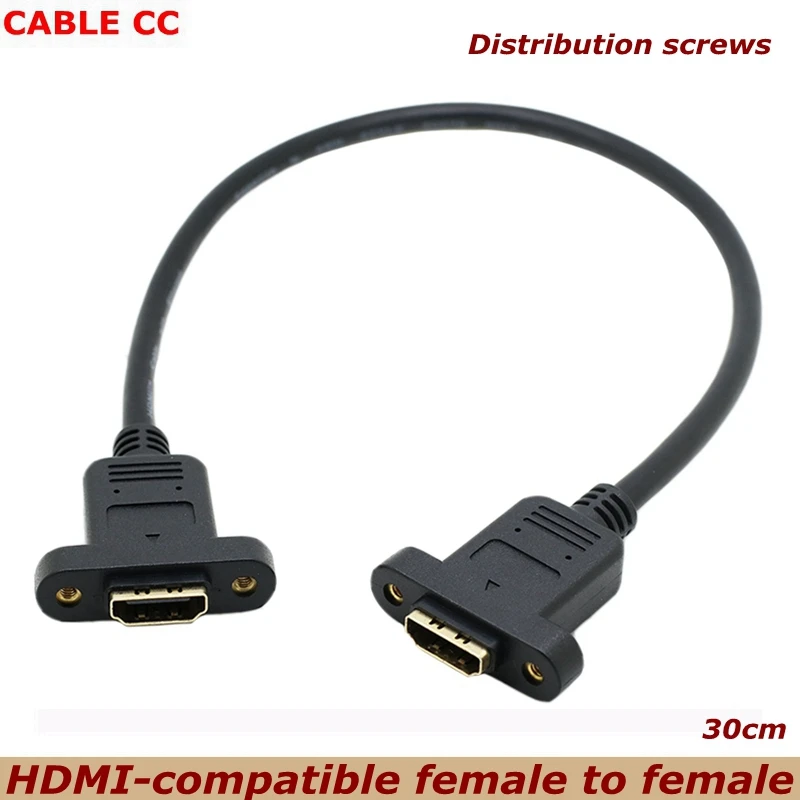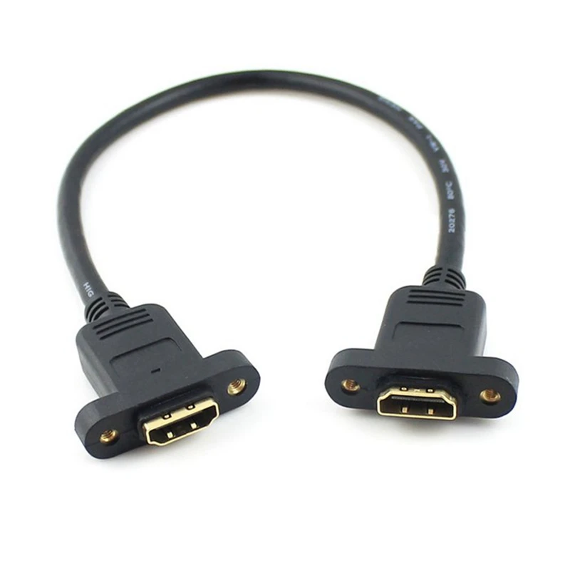 Comprar Adaptador convertidor hembra a hembra compatible con HDMI HD, conector de extensión de Cable con orificio para tornillo de Panel V1.4, negro, 0,3 m