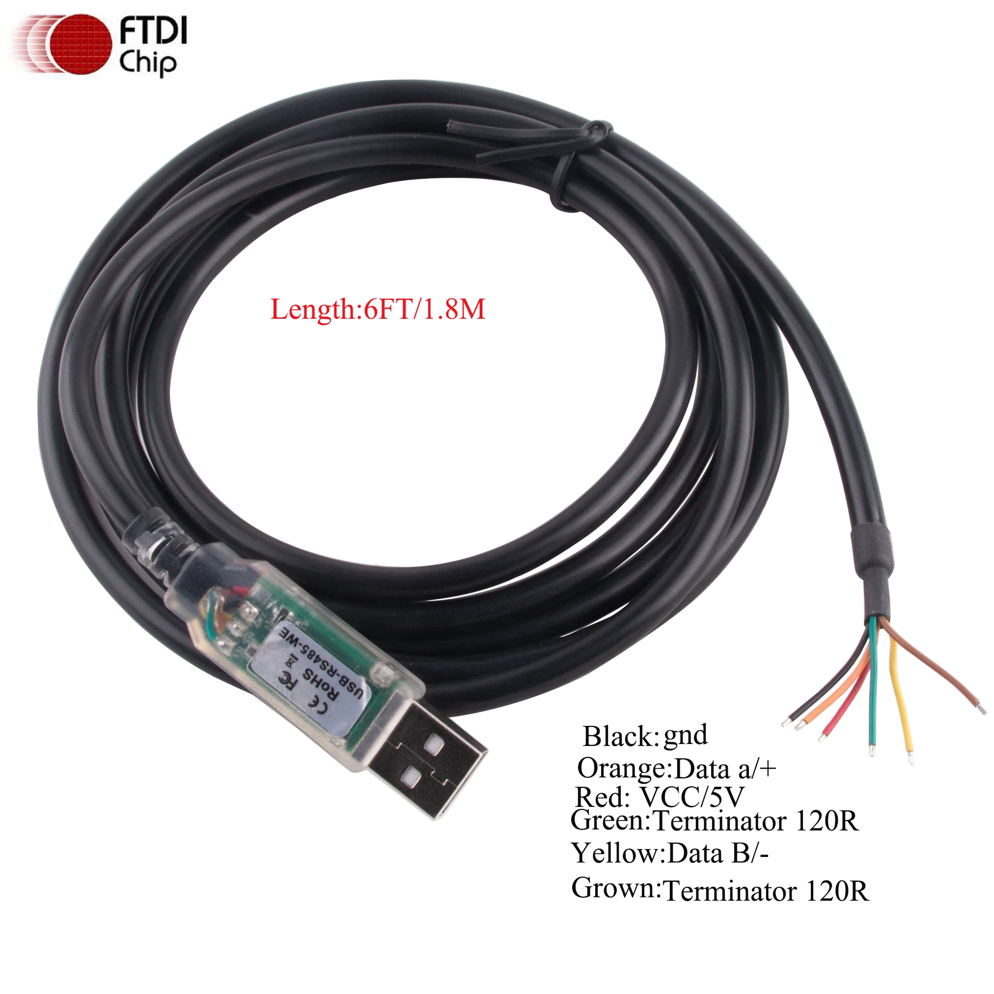 El cable es un cable convertidor UART serie de niveles USB a RS485 que incorpora el dispositivo IC de interfaz USB a UART serie FT232R de FTDI que maneja todas las señales y protocolos USB.