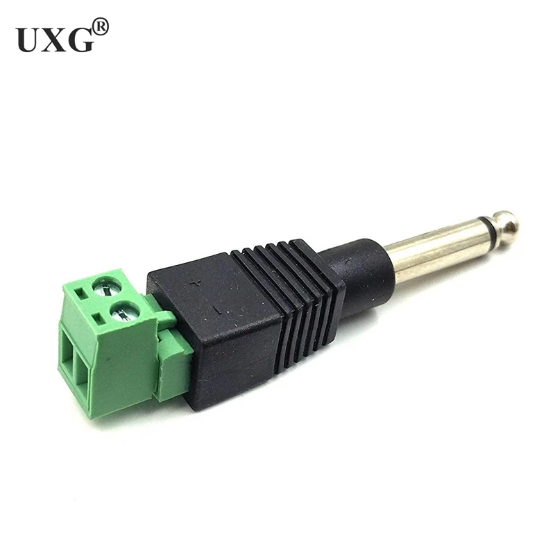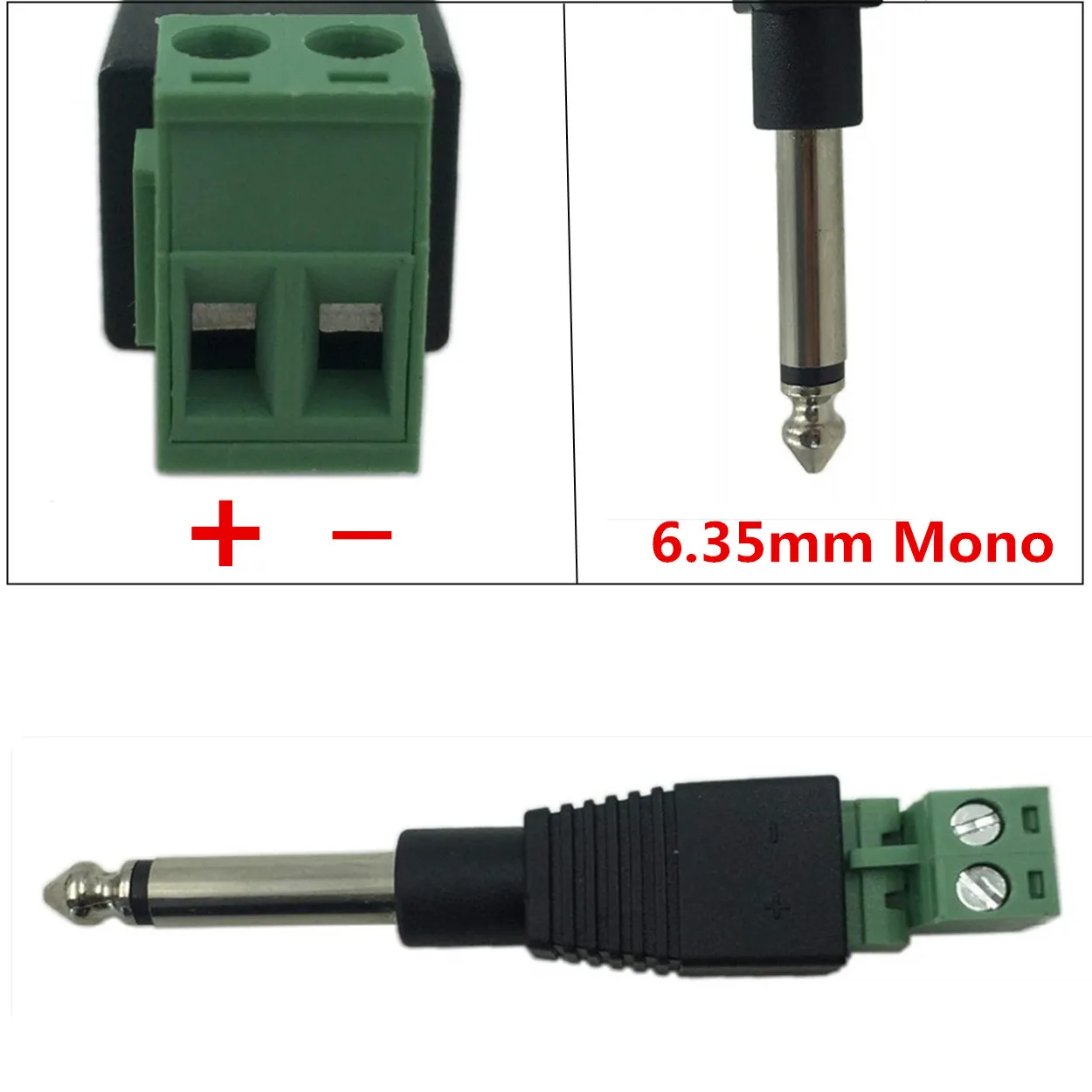 Comprar Adaptador convertidor sin soldadura, 6,35mm, 6,5mm, Audio estéreo Mono macho a 90 grados, 2 pines, Terminal de tornillo hembra, micrófono Balun