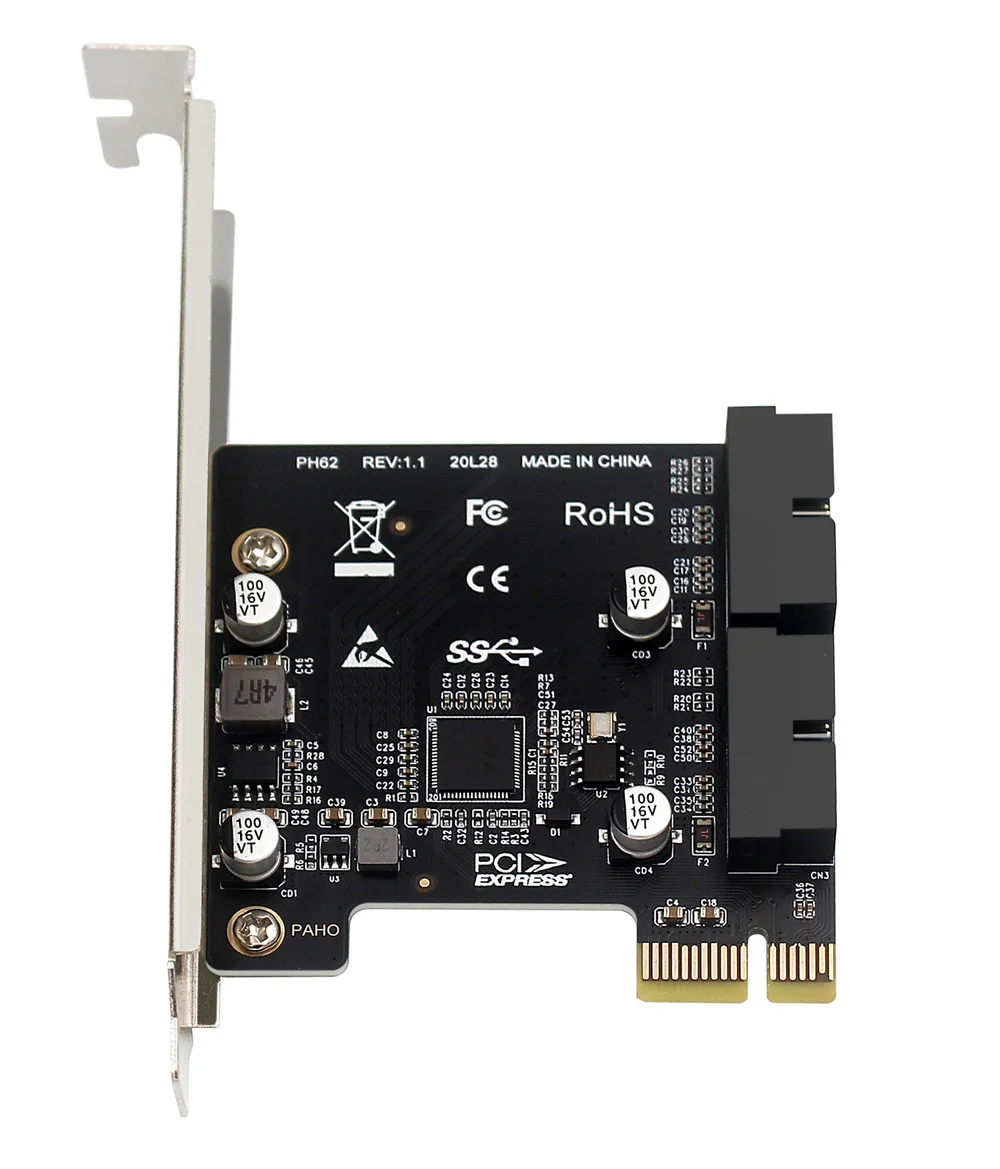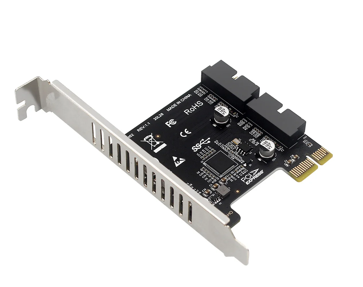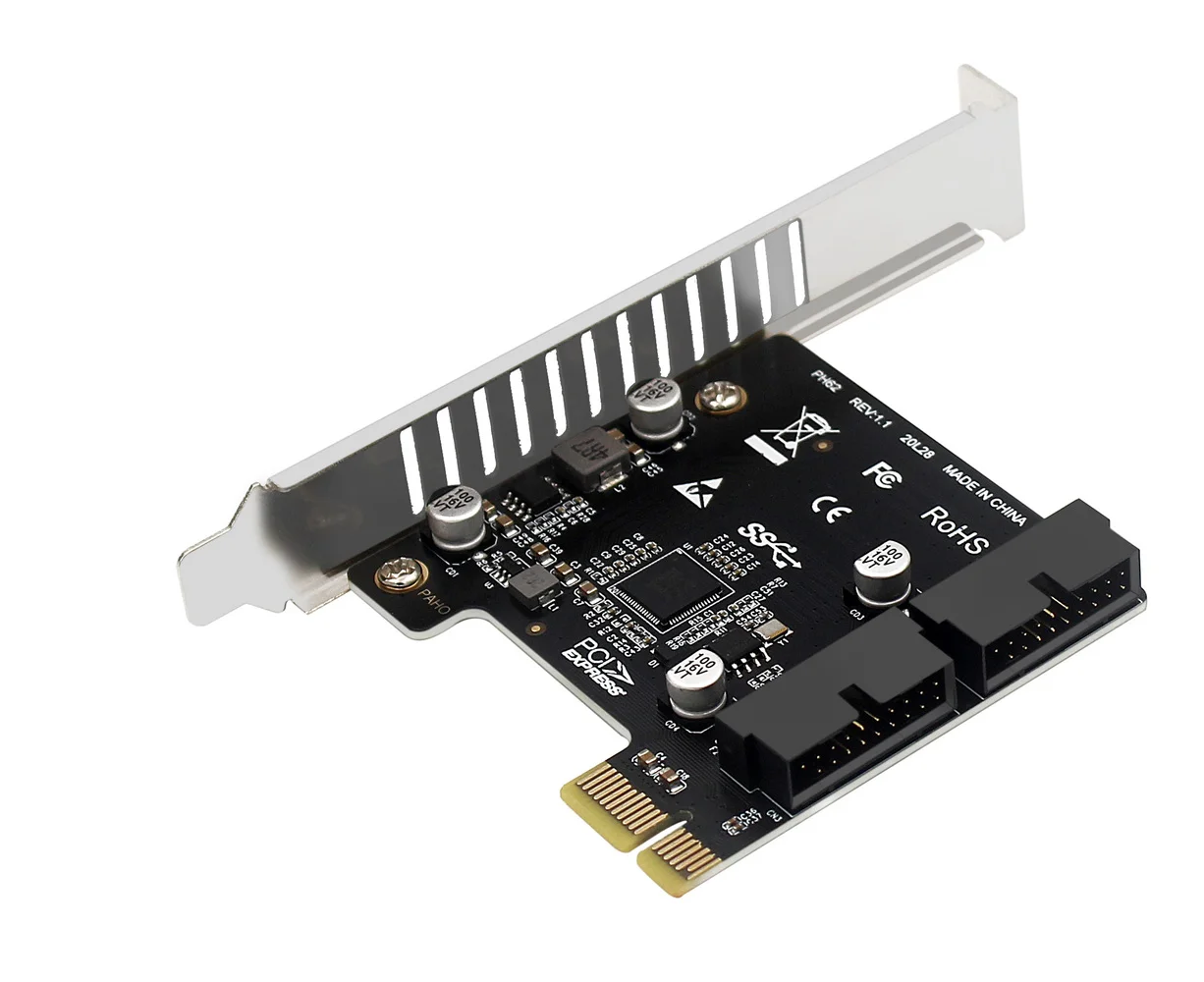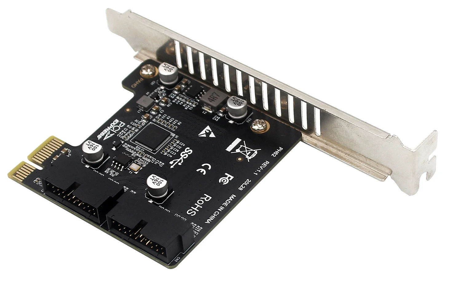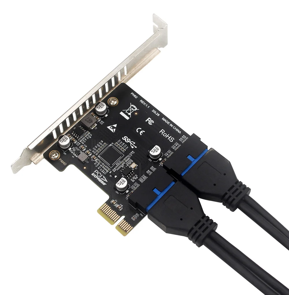 Comprar Adaptador convertidor de tarjeta Pcie a 2 puertos, supervelocidad, 19Pin, USB 3,0, PCI-e a Dual, interno, 20 pines, PCI Express, para ordenador