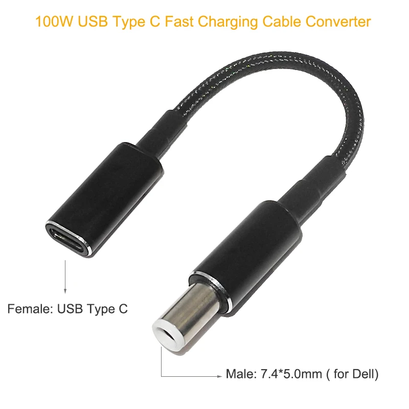 Convertidor de Adaptador tipo C de 100W, Cable de carga rápida PD, Cable USB tipo C hembra a enchufe de 7,4*5,0mm para cargador de portátil Dell
