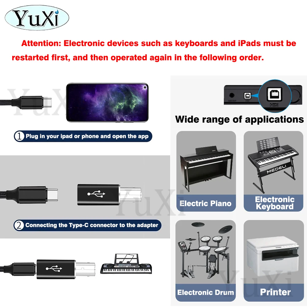 Adaptador convertidor tipo C hembra a MIDI macho para impresora de teclado de piano eléctrico, adaptador de transferencia de datos tipo C a USB B, 1 unidad