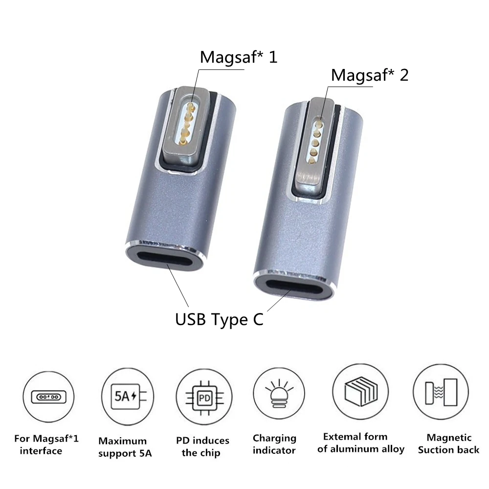 Comprar Adaptador convertidor USB C a Magsaf 2 y Magsaf 1 para Apple MAC Notebook tipo C, enchufe de conversión de ordenador portátil hembra a macho magnético