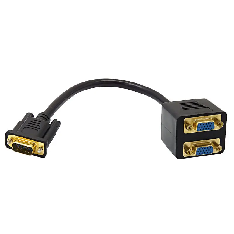 Gold Plated VGA 1 Male to Dual 2 VGA Female Converter Adapter Splitter Y Cable