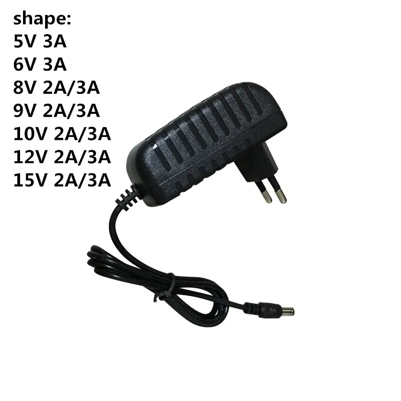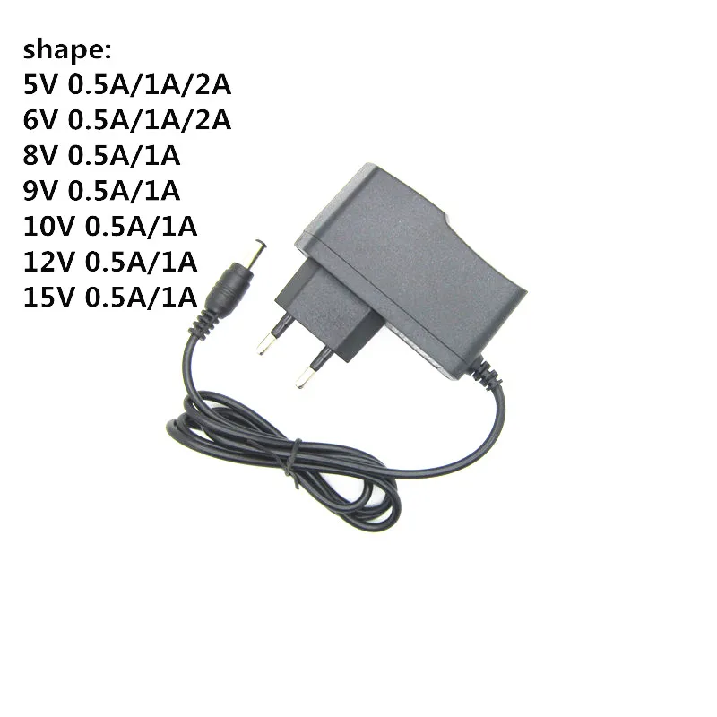 Producto relacionadoParámetros de red y otras instruccionesFuente de alimentación universal, transformador de fuente de alimentación conmutada, 3528, 5050, fuente de alimentación iluminada con lámparaEl voltaje de la fuente de alimentación está en el rango adecuado de 5V, 6V, 8V, 9V, 10V, 12V, 15V para la fuente de alimentación de 0.5A,1A,2A,3ALa atención selectiva de la potencia debe ser consistente con que el voltaje y la corriente seleccionados sean iguales o mayores que la potencia requerida por la fuente de alimentaciónVoltaje de entrada (ENTRADA): 100-240V 50-60HzVoltaje de salida (salida): CC V 5, 6V, 8V, 9V, 10V, 12V, 15V- 0.5A, 1A, 2A, 3APotencia (potencia máxima de salida): 5W, 6W, 8W, 9W, 10W, 12W, 15WForma: como se muestra a continuación, el mapa físico tiene 1 metro de largoEnchufe de CC: 5,5mm * 2,1mm-2,5mmColor: negroPolaridad: positivo interno, negativo externoOtros tipos de electricidad necesitan ponerse en contacto con el propietarioGracias por comprar en nuestra tienda, ¡le deseo una feliz compra!