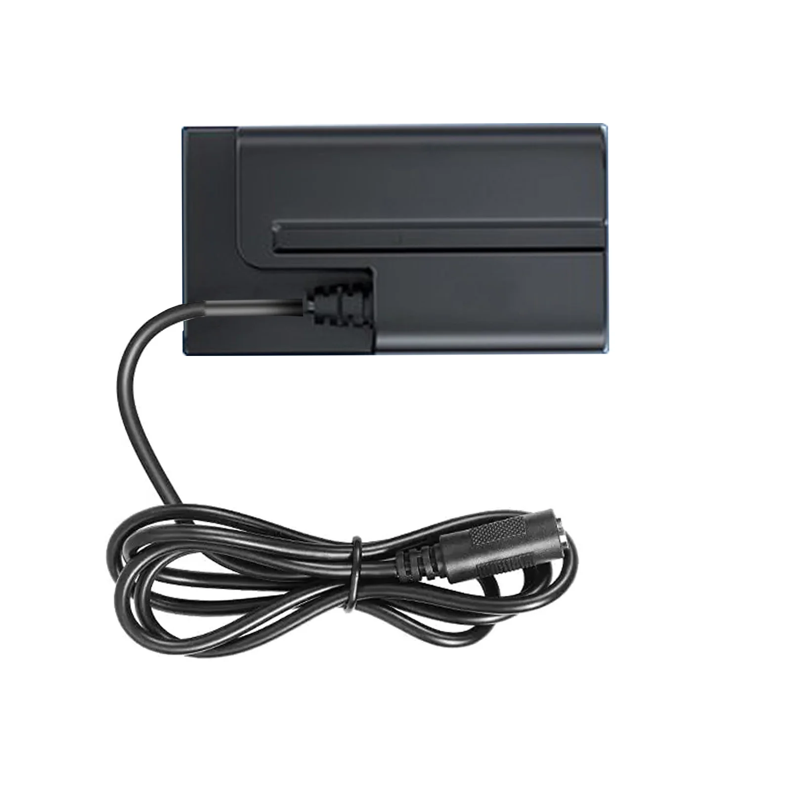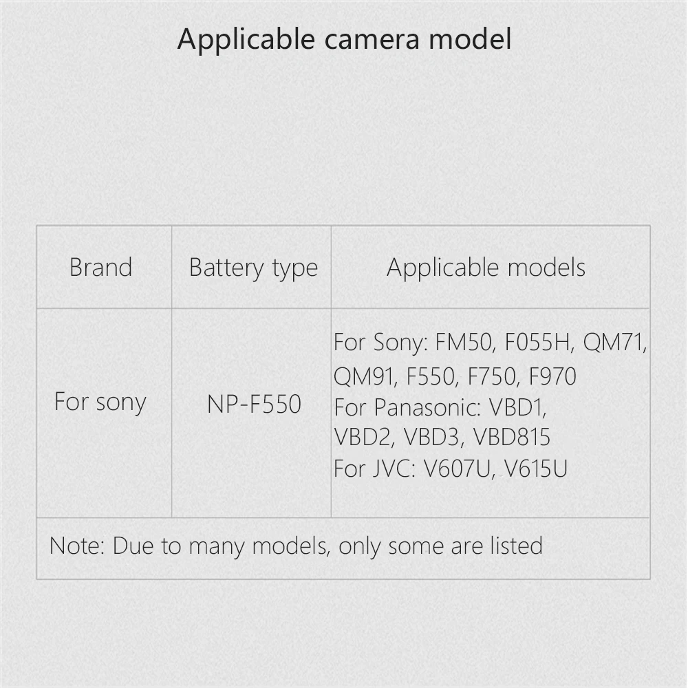 Especificaciones del producto:Entrada de batería ficticia: DC 7-8,4 V 2A MIN.Salida: 6-8,4 V.Entrada del adaptador de corriente: CA 100-240V 50/60Hz 1.5A MAX.Salida: DC 8,0 V/3A 24W.Construido con protección de múltiples circuitos (sobrecarga, cortocircuito, alta temperatura y protección contra sobretensiones),Construcción de alta calidad resistente al fuego.Compatibilidad con:Para batería de la serie Sony-F 570/750/770/960/970/Monitor de grabadora de vídeo con luz LED, etc.Pasos de uso:1. Retire la batería original, reemplácela con la batería simulada y cierre la tapa del compartimento de la batería.Conecte el adaptador y la toma de corriente. 2. Aviso : Asegúrese de que la tapa de la batería esté completamente cerrada antes de usar la cámara.