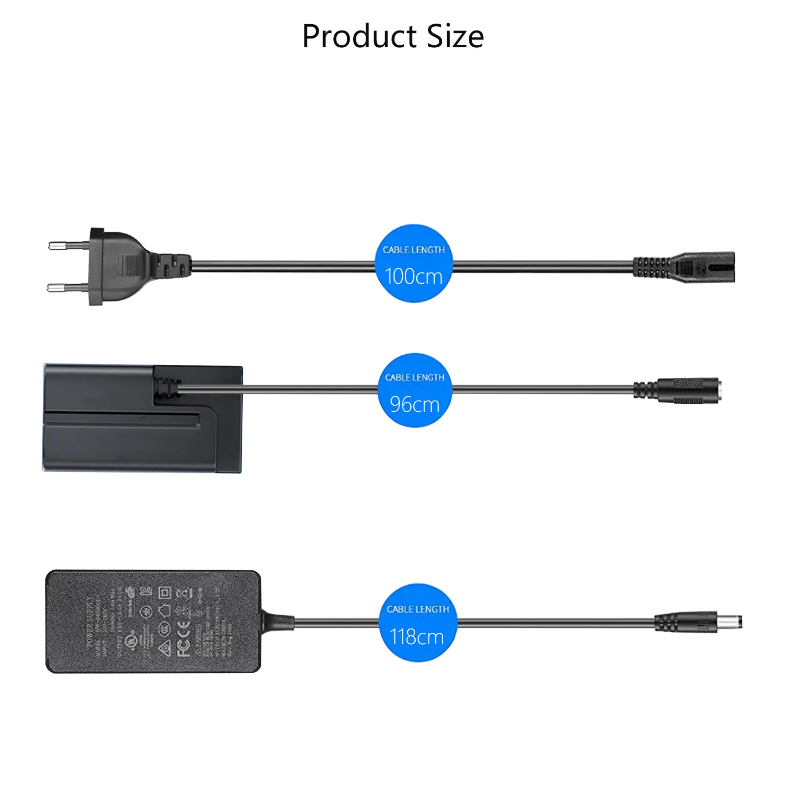3. Es la mejor opción para una fotografía de larga duración para el estudio y la fotografía en interiores.4. El adaptador de corriente proporciona continuamente energía ilimitada a la cámara a través de la toma de CA,No es necesario reemplazar las múltiples baterías y el cargador de la fuente de alimentación, para que pueda completar el rodaje de estudio a largo plazo,Grabación de vídeo o conexión al PC, TV, VCR,terminal para conferencias de chat de vídeo en línea y más.Escenarios aplicables.Paquete incluido:1 adaptador de corriente CA1 x Acoplador de CC de1 Cable de CA con enchufe europeo o estadounidenseEl acoplador de corriente continua (CC) de la cámara no se puede usar solo, es necesario equipar el adaptador de CA/CC de este kit para que funcione bien con la cámara.