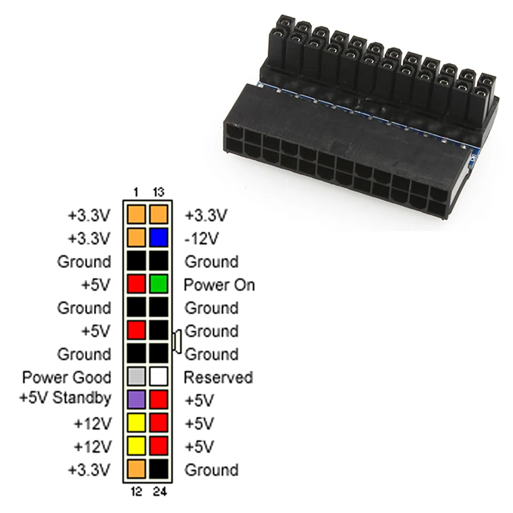 Adaptador de corriente ATX de 24 pines hembra a 24 pines macho, escritorio de 90 grados, placa base de PC, Conector de 24 pines para fuente de alimentación de Cable