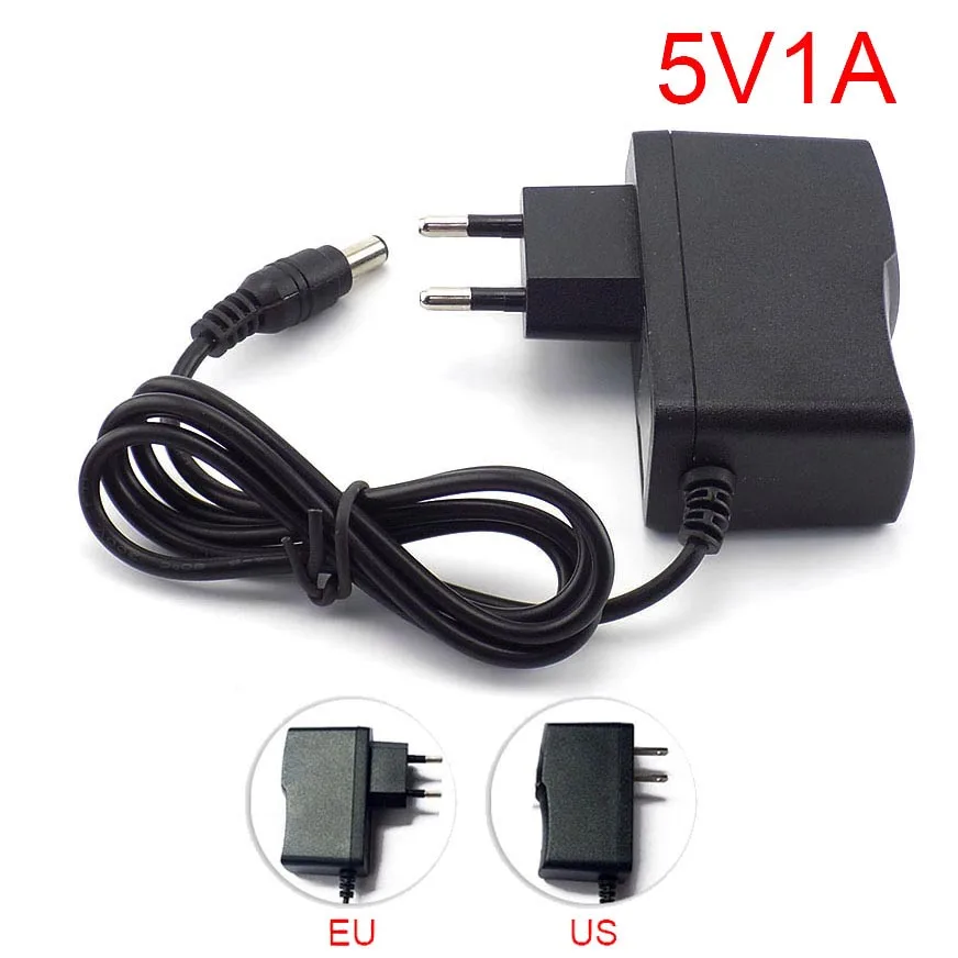 Comprar Adaptador de corriente AC a DC 5V 1A 1000mA, cargador con enchufe europeo 100V-240V, Adaptador convertidor 5,5x2,1mm para tira LED, cámara CCTV L19