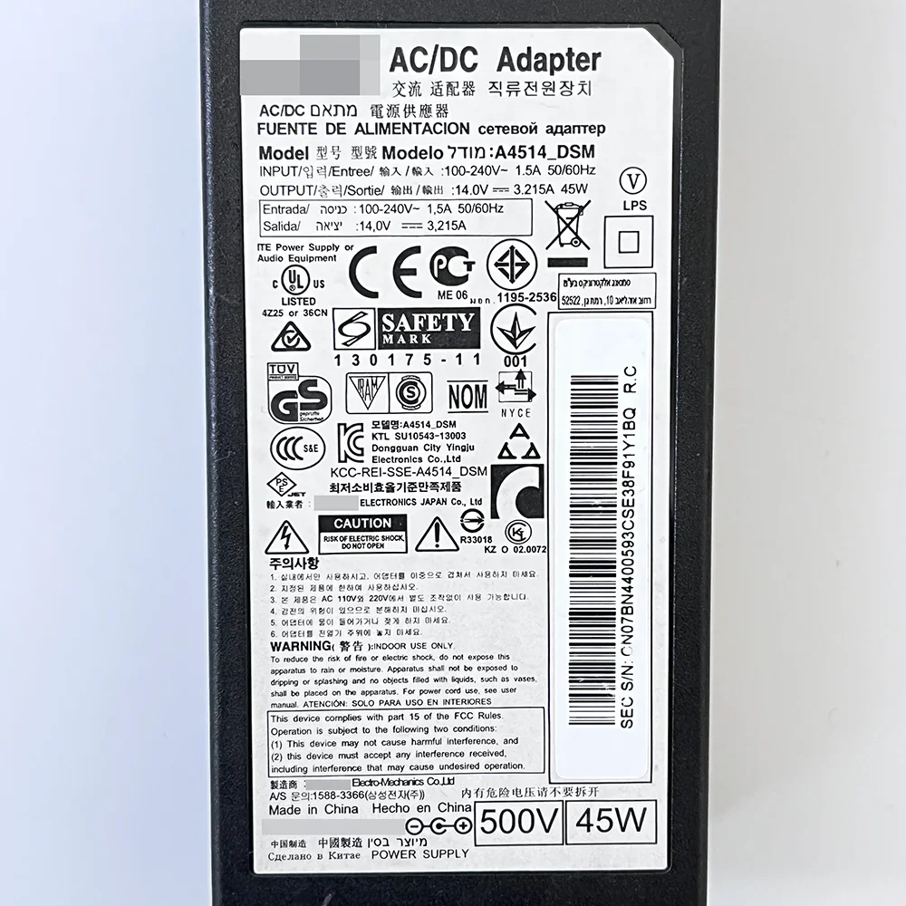 Comprar Adaptador de corriente AC/DC para Monitor, cargador compatible con SYNCM700TFT SYNCM770TFT SYNCM570STFT, BN44-00593C = BN44-00593A, a4514 _ DSM, 14V, 3.215A, 45W