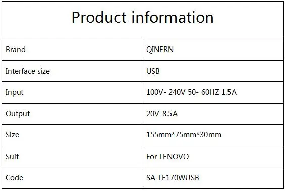 Artículo: Adaptador de corriente para computadora portátil 170W 20V 8,5A