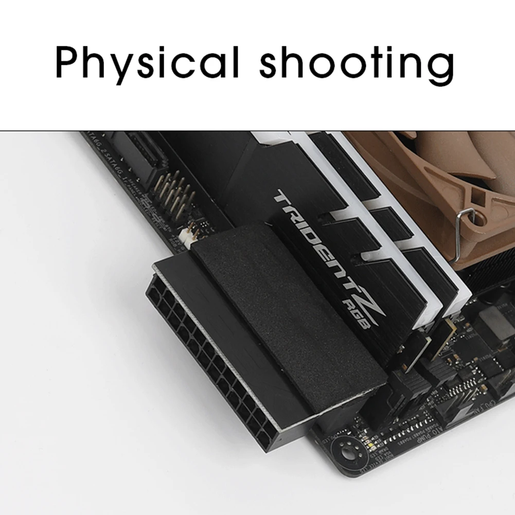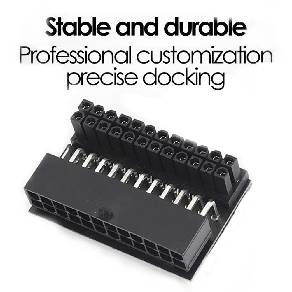 Adaptador de fuente de alimentación ATX de 24 Pines, Conector de montaje de cable de alimentación de 90 grados, cabezal de dirección para placa base de ordenador de escritorio Característica: Interfaz de conector de alimentación ATX dedicada investigada y desarrollada profesionalmente, resistente y duradera. El PCBA grueso puede transportar una corriente excesiva; la soldadura SMT respetuosa con el medio ambiente sin plomo es firme. El EVA grueso aislante no conductor se pega en la parte posterior para proteger las juntas de soldadura y garantizar la seguridad del cableado en el chasis. La interfaz de alimentación de la placa base del ordenador ATX gira 90 grados para embellecer el cableado dentro del chasis, reducir la altura del cable de alimentación y hacer que el cableado en la parte posterior del chasis sea más suave.