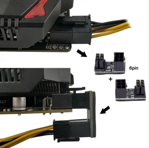 Puede instalar el cable de alimentación de 6 pines de dirección vertical a horizontal con este adaptador.