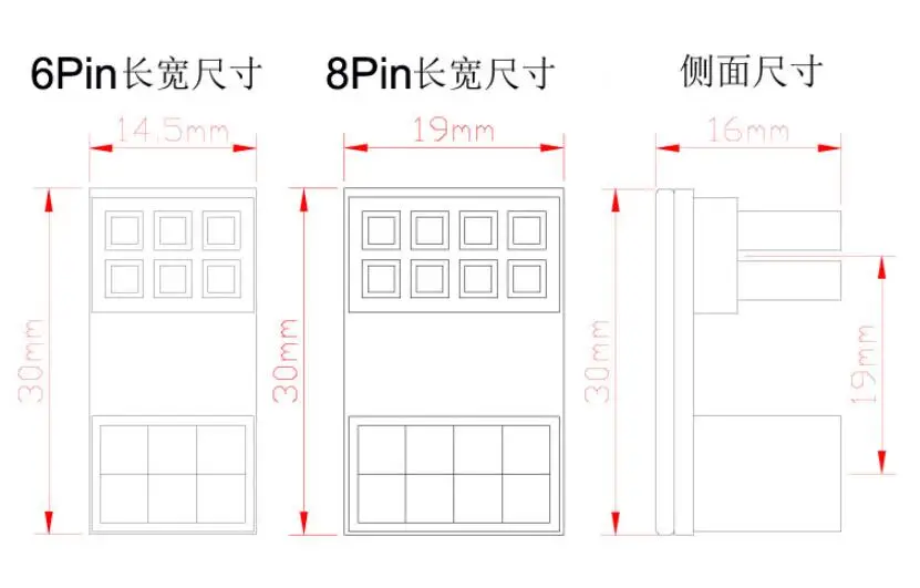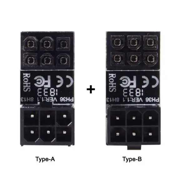El adaptador está diseñado para cambiar la dirección de instalación del cable ATX de 6 pines.