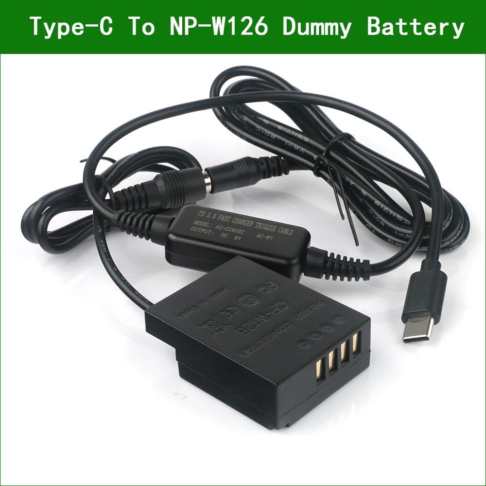 Comprar Adaptador de corriente de batería ficticia, acoplador de CC para Fujifilm CP-W126, NP-W126, X-Pro2, X-Pro3, X-T2, X-T3, X100V, USB tipo C, X-T10, W126S