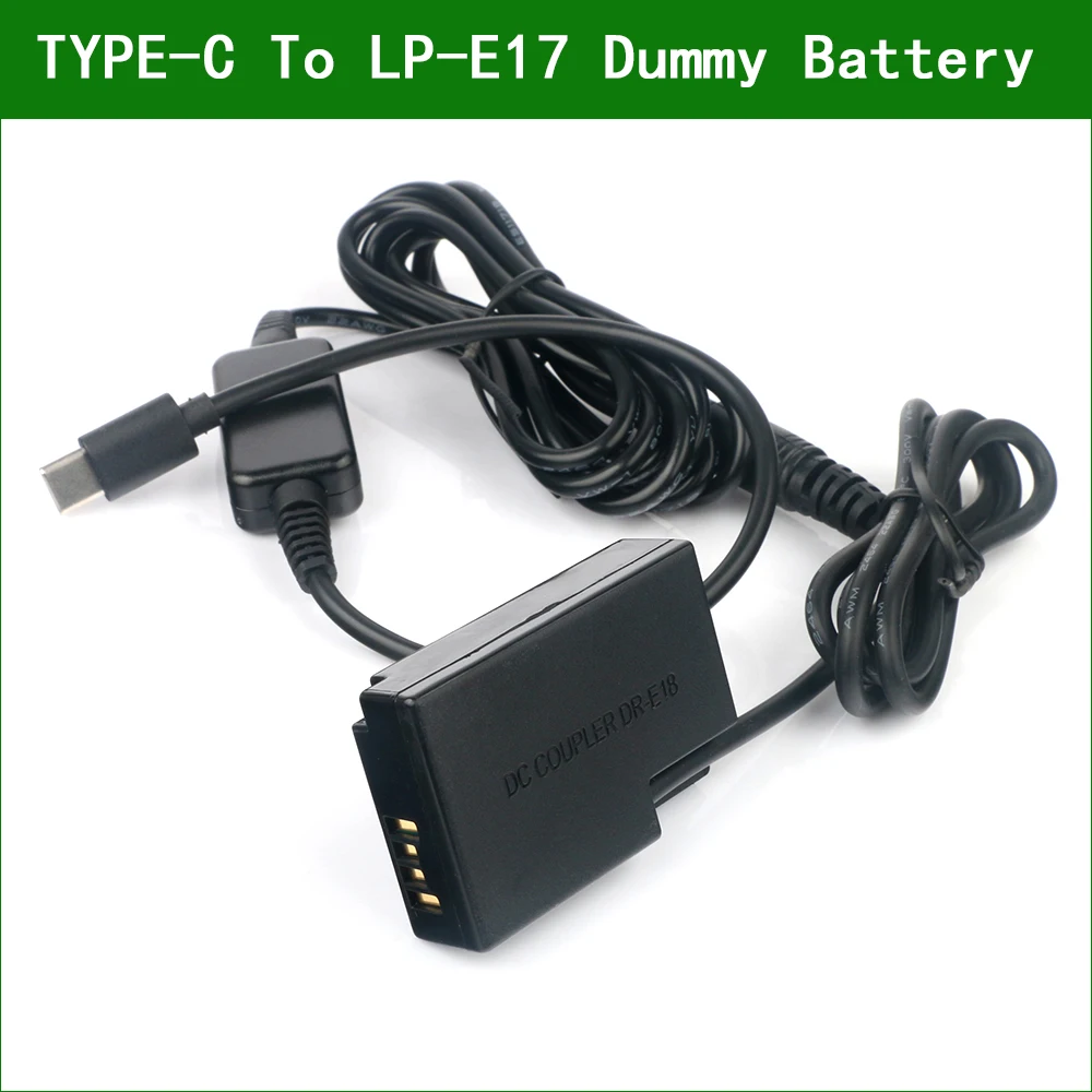 Comprar Adaptador de corriente de batería ficticia DR-E18 USB tipo C, acoplador CC para Canon EOS 77D 200D II 250D 750D 760D Kiss X8i X9 X9i X10, LP-E17