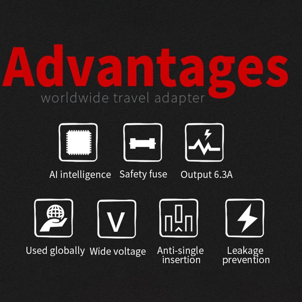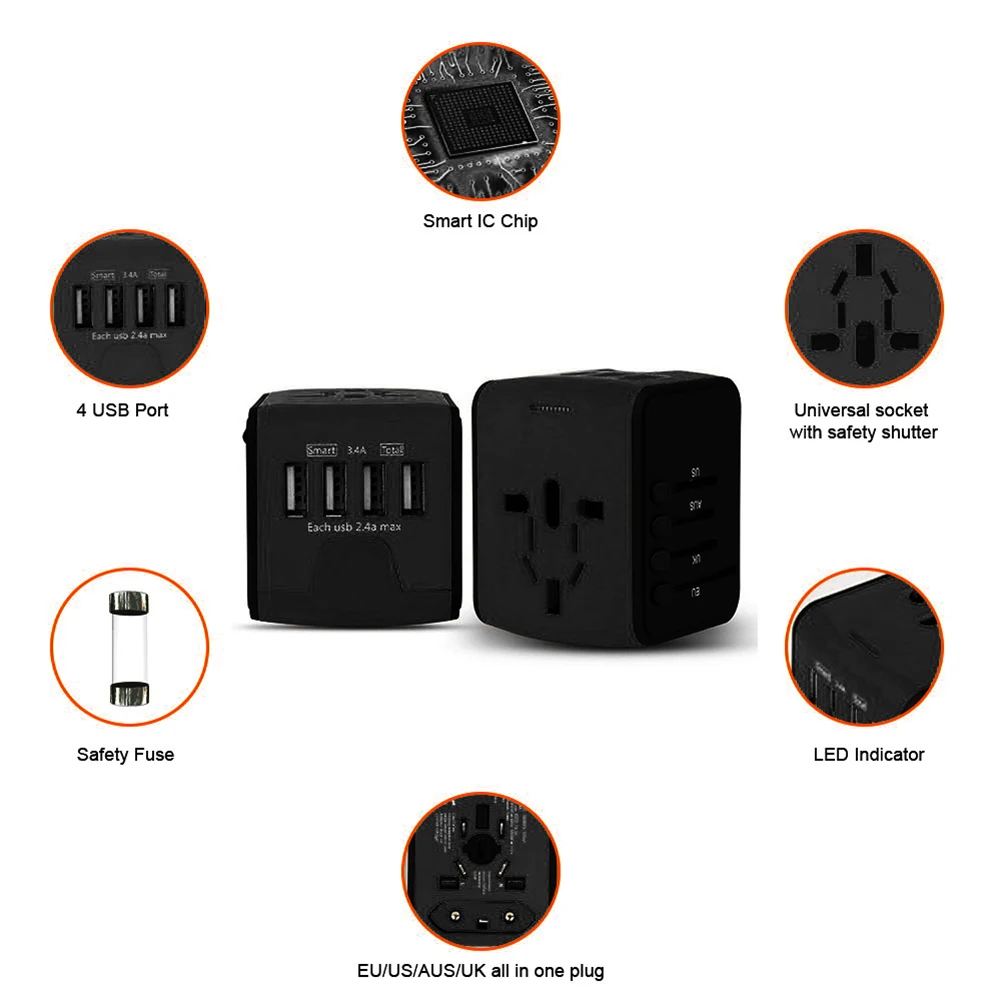 Característica: 1 Practicidad:Cubre más de 190 países o regiones. Tiene enchufes US (tipo A/B), EU (tipo C/F), UK (Tipo G), AU (tipo I), tomas de corriente alterna universales y 4 interfaces de carga USB. Se vende en los Estados Unidos, Canadá, Gran Bretaña, Europa, China, Japón y casi cualquier parte del mundo. 2 De Seguridad:CE, FCC, RoHS, etc. De acuerdo con los estándares de seguridad nacionales, se crean múltiples sistemas de protección para evitar eficazmente posibles riesgos de seguridad como sobretensión, sobrecorriente y sobrecalentamiento. El deflector de seguridad integrado evita que el usuario contacte directamente con las partes en vivo del enchufe. 3. Multifuncional:4 X interfaces de salida USB tipo A, que pueden suministrar energía A 4 dispositivos al mismo tiempo. Los cargadores tipo A pueden cubrir la mayoría de dispositivos portátiles, como teléfonos inteligentes, auriculares inalámbricos, altavoces, relojes inteligentes, cámaras, tabletas y portátiles. 4 inteligente:Integra circuitos IC inteligentes para calcular, detectar y distribuir la corriente de carga ideal de cada dispositivo. Selecciona la configuración de carga más rápida y segura para diferentes dispositivos. Este adaptador de viaje universal bloquea y desbloquea de forma segura todos los pines en una posición fija para que los pines no se caigan al presionar el enchufe. El pasador retráctil es conveniente para empacar con otros artículos de viaje. 5 portátil:Este cargador es de 50x50x65mm, tamaño pequeño. Este adaptador puede reducir la presión de viaje y facilitar el acceso global. Los enchufes 4 en 1 están disponibles en más de 190 países. Especificación: Origen: China continental Interfaz de salida: puertos 4 A Fuente de alimentación: A.C. Fuente Número de modelo: Cargador de pared Tipo: Cargador y fuente de alimentación Potencia máxima de salida: 60W Protocolos de carga rápida aplicados: para carga rápida Huawei Carga inteligente: Sí Modelo de producto: 199-04U Color del producto: negro, azul, verde (opcional) Material del producto: material de ABS + metal Voltaje de entrada: ca 100-240V 50/60Hz Voltaje de salida: cc 5V a/máx. Corriente de salida: A en total Características del producto: 4 X interfaz de salida USB Tamaño del producto: 50x50x5mm/X pulgadas Peso del producto: 121,5g Nota: ![]() ![]() ![]() ![]() ![]() ![]() ![]() ![]() ![]() ![]() ![]() ![]() |