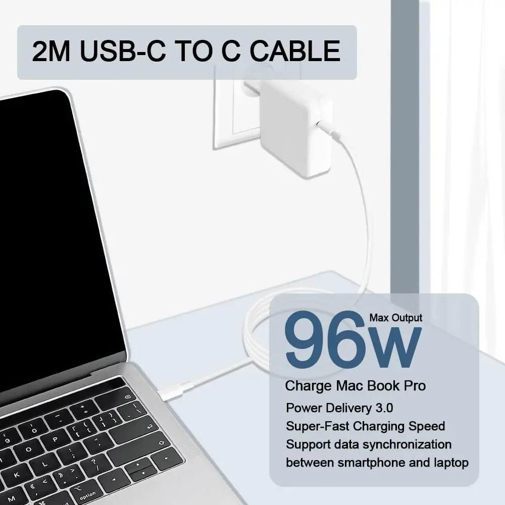 Comprar Adaptador de corriente de cargador USB C para Mac Book Pro, puerto USB C para MacBook Pro y MacBook Air 13, 14, 15, 16 pulgadas, 30W, 61W, 87W, 96W