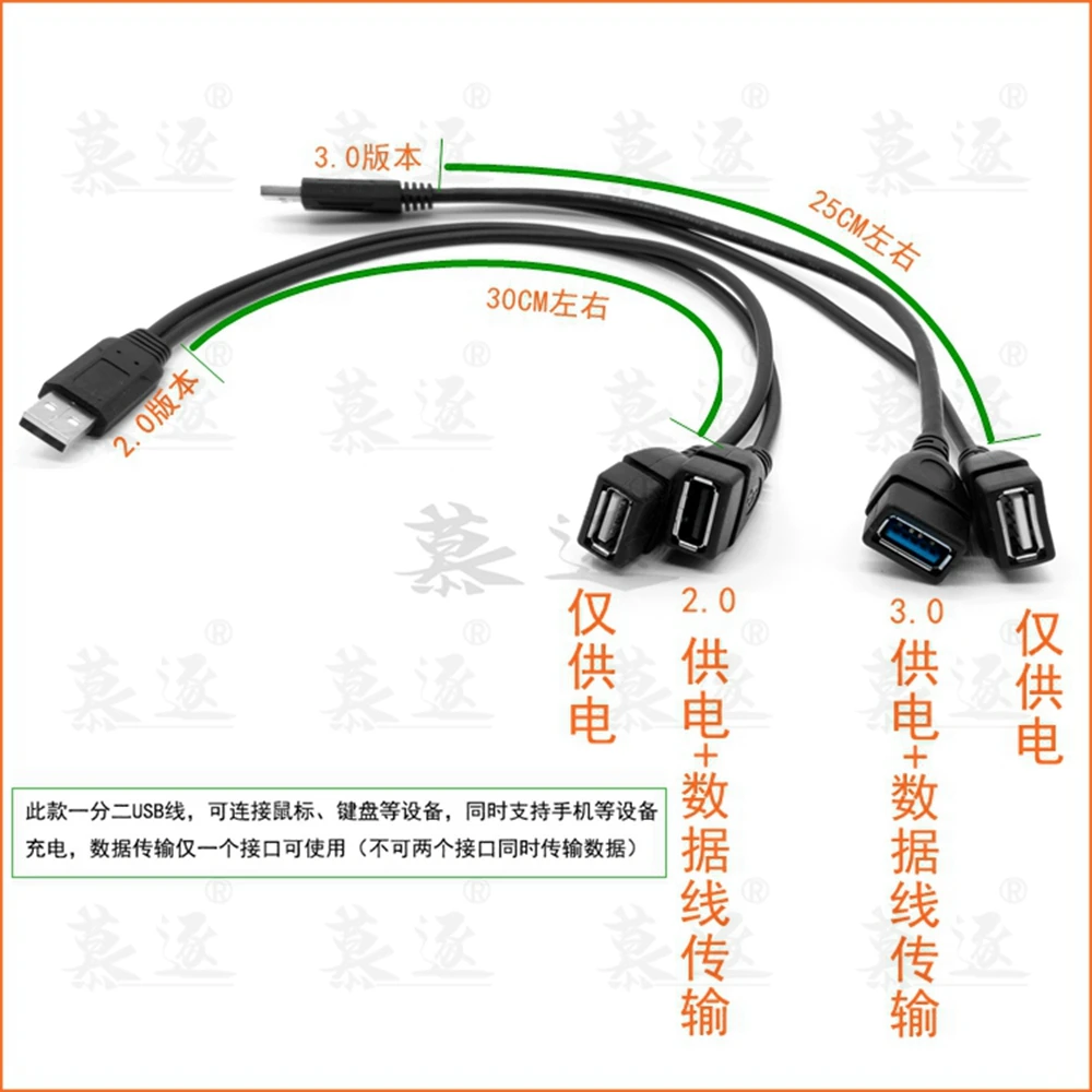 Comprar Adaptador de corriente de concentrador de datos, divisor de Cable de alimentación de carga USB, 20CM, USB 2,0 Y 3,0 A 1 macho A 2 USB Dual hembra