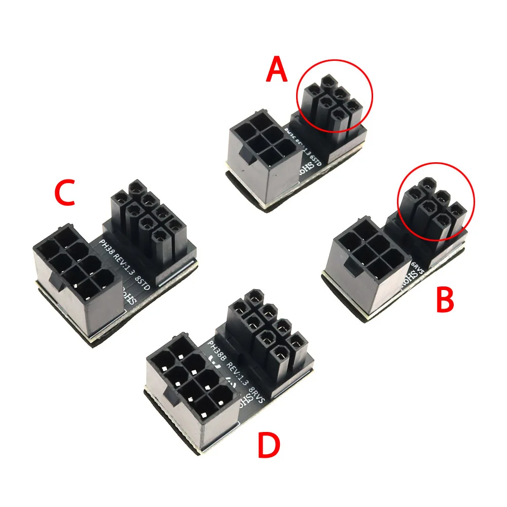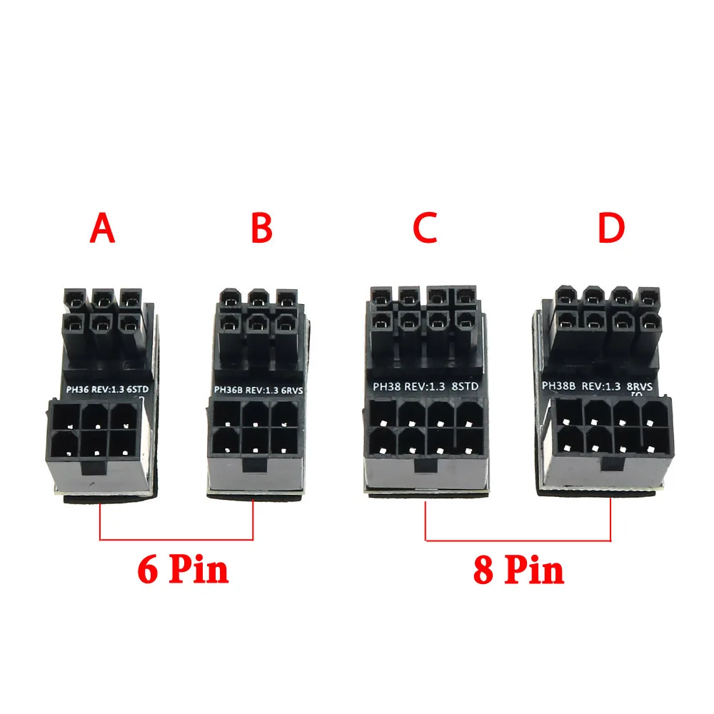Adaptador de corriente de 2 piezas Comprar Adaptador de corriente hembra de 6 pines y 8 pines, conector macho de 180 grados, en ángulo de 6 pines y 8 pines, para tarjeta gráfica de PC, 2 unidades por lote