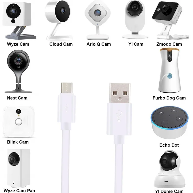 Nota: Asegúrese de que la interfaz de la cámara es micro USB o que el modelo de la cámara está etiquetado en la descripción. Para que la compra incorrecta provoque pérdidas Longitud de la línea: Se recomienda 1m/2m/3m/5m/10m, 5m/10m para generar más de 2A cabezal de carga. Si usa un cabezal de carga de 1A, es posible que no pueda cargar debido a la corriente de salida insuficiente.