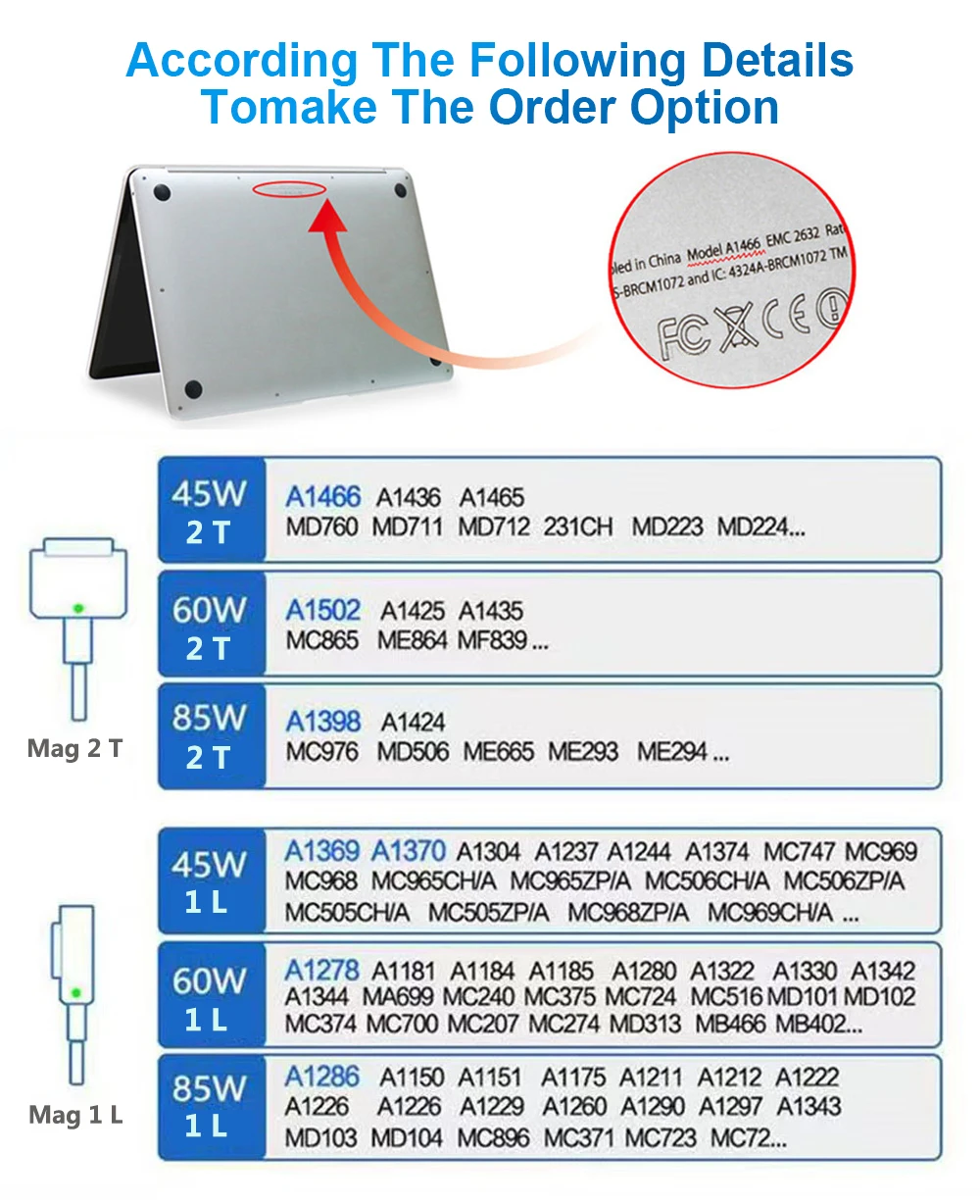 Comprar Adaptador de corriente para ordenador portátil, cargador para Macbook Air Pro, 45W, 60W, 85W, M1 2, A1465, A1466, A1425, A1435, A1424, A1398, novedad