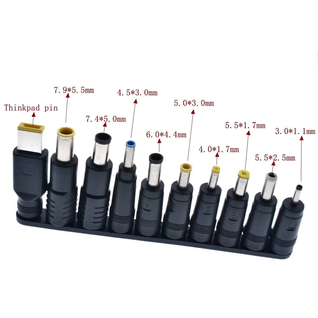 100% nuevo y de alta calidad Juego 10 en 1 multifunción para enchufes de CC para adaptador de CA Notebook Laptop Universal Utilizado en fuente de alimentación externa y transformador a bordo Conector hembra de 5,5*2,1mm a 34 enchufes macho tipo mjlti Conector de Cable: 5,5x2,5mm Longitud del Cable: 1,5 m