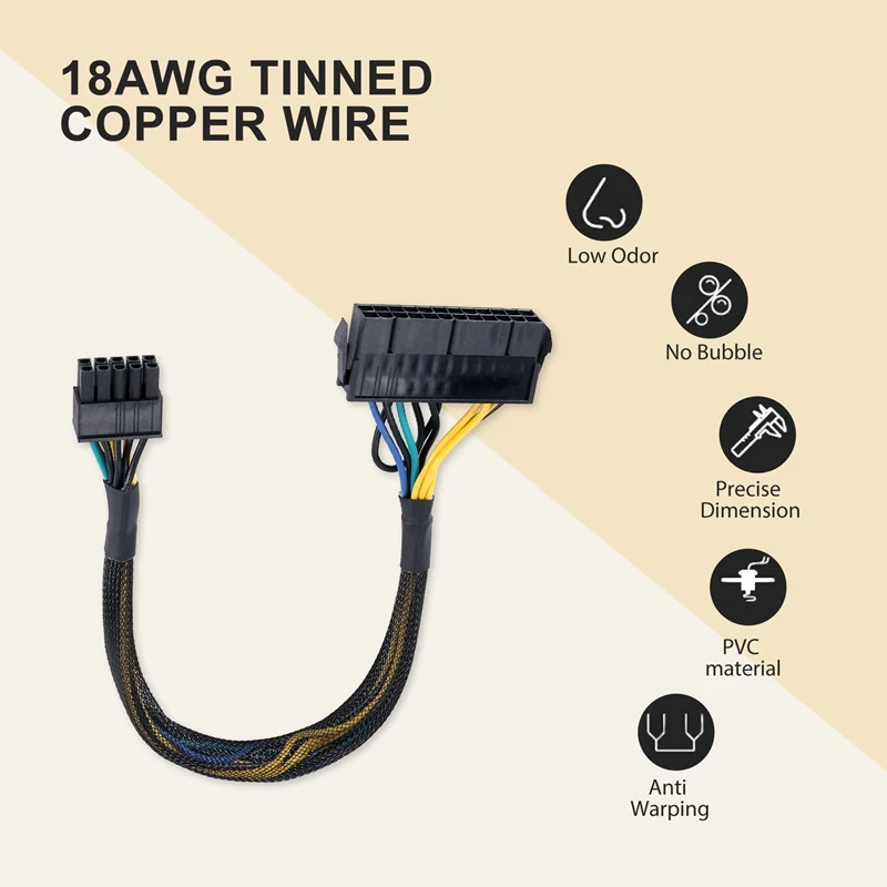 [24 P - 10 P] Extremo de 24 pines para enchufar en la fuente de alimentación ATX estándar de 24 Pines, extremo de 10 pines para enchufar en la placa base de Lenovo;