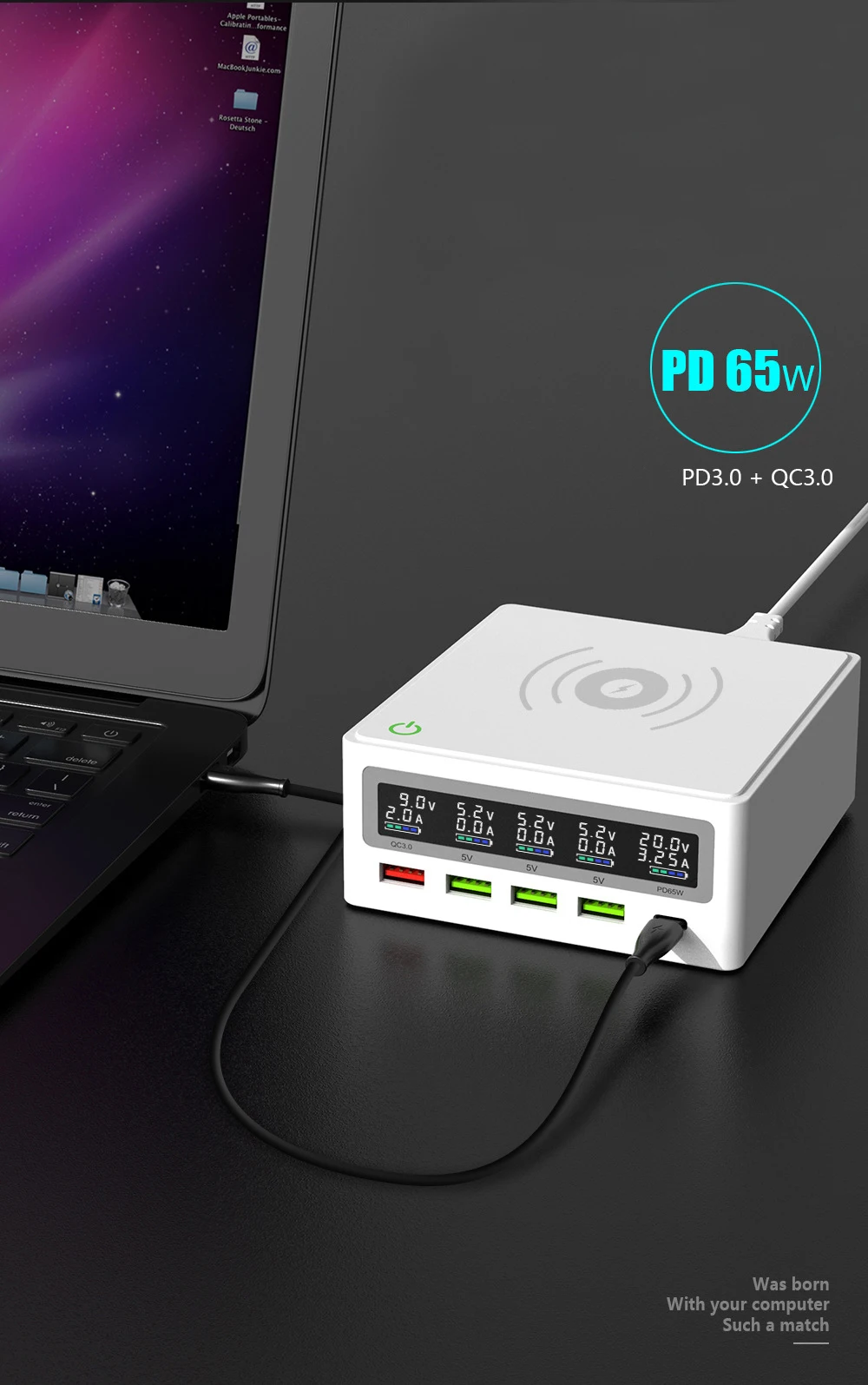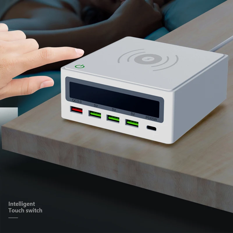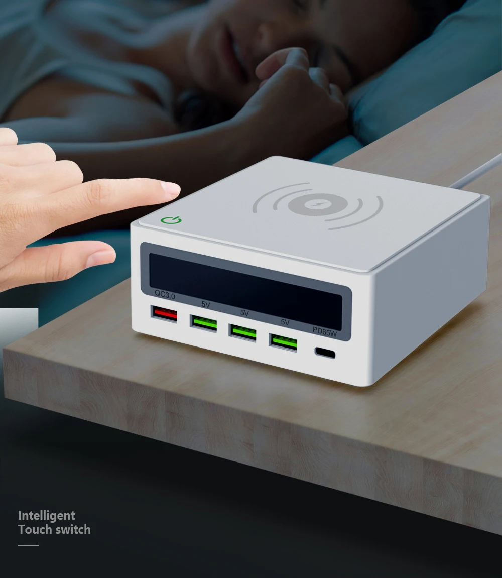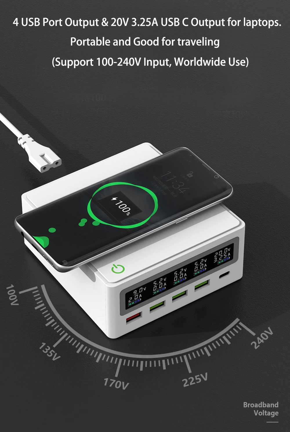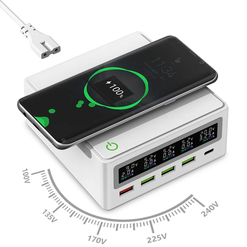 Cargador USB múltiple con pantalla LCD inteligente, pantalla LCD inteligente para mostrar el estado de carga (voltaje y corriente de salida) de cada puerto USB, cargador inalámbrico sin pantalla.