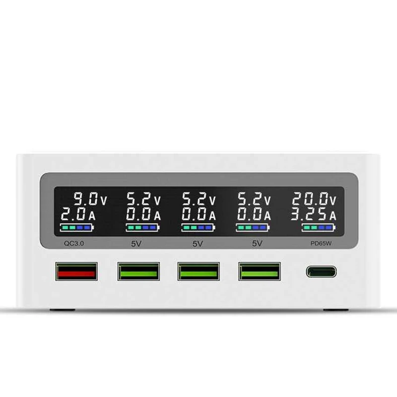 Comprar Adaptador de corriente QC3.0 con 5 puertos USB tipo C, estación de carga rápida para ordenador portátil y tableta, PD, 65W