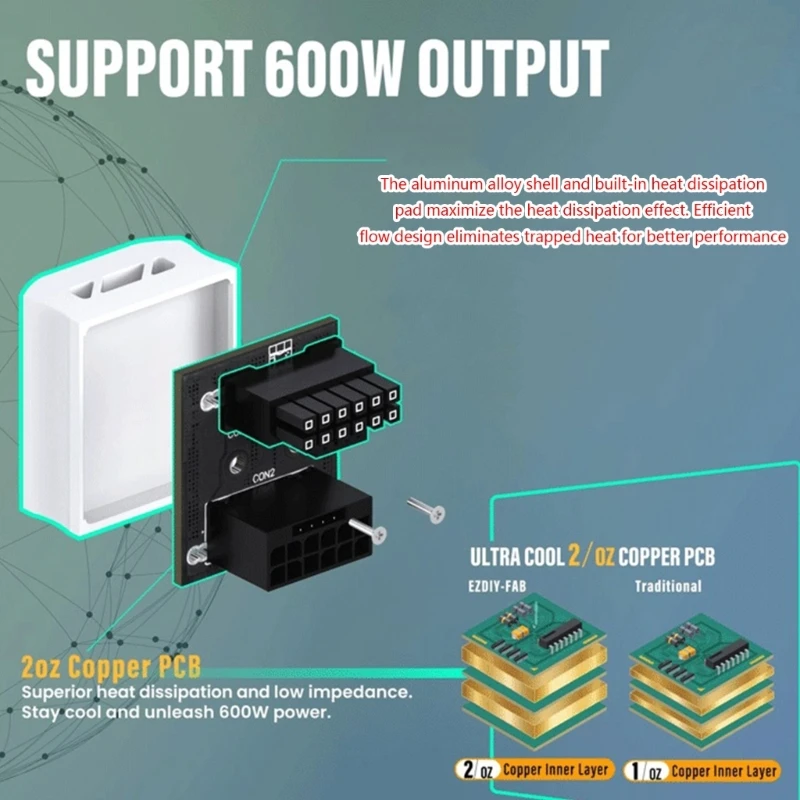 Adaptador en ángulo hacia abajo compatible con 4090WINDFORCE 400 GAMNG OC/400 GAMING OC/4070T GAMING OC/ AORUS4090MASTER/ AORUS4080MASTER/AORUS400XTREME WATERFORCE400AERO 4080AERO/ 4070T1 Ealoc;4090FE/4080FE/4070TiFE/4070FE/3090TiFE;4070Ti/4090 INNO3D:4090;