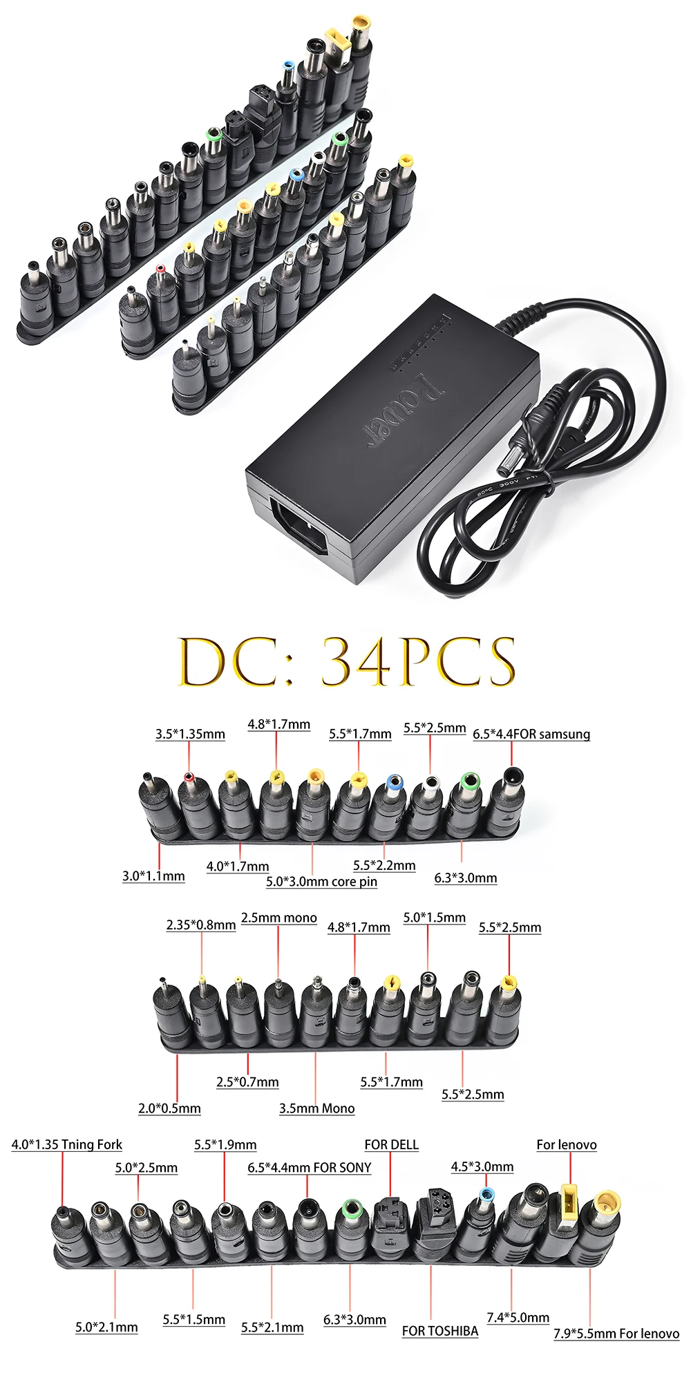 Comprar Adaptador de corriente Universal para ordenador portátil de CA, 90W, 12V, 15V, 16V, 18V, 19V, 4,5a, 20V, 24V, cargador para Toshiba, Hp, Asus, Acer, Sony, Lenovo