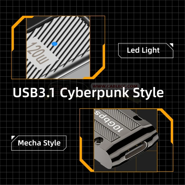 Adaptador USB 3,1 estilo Mecha. Con su potencia innovadora y su diseño hardcore de ciencia ficción, el producto final es un estilo cyberpunk totalmente tecnológico y futurista.