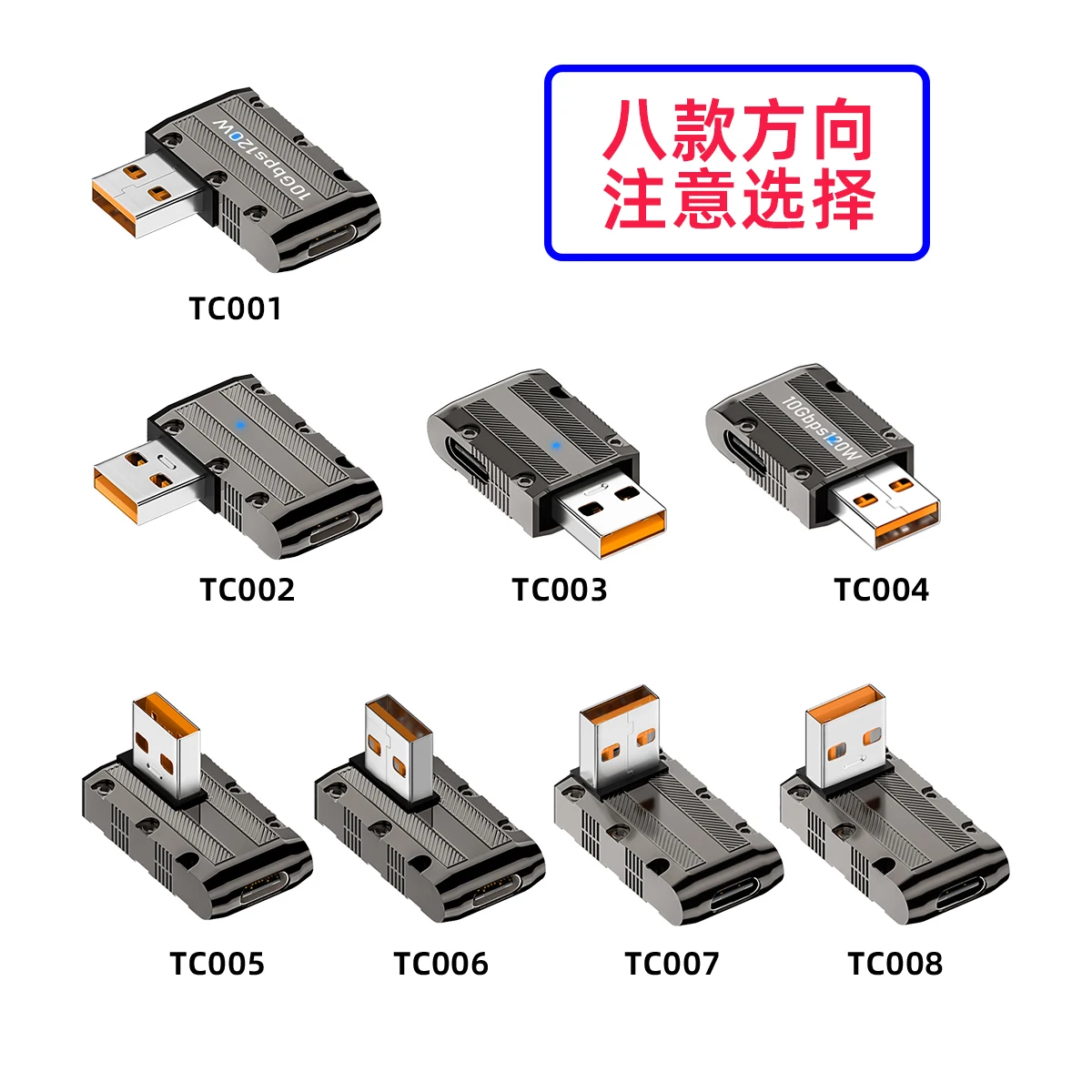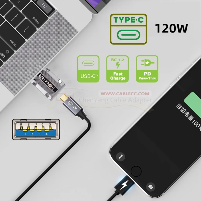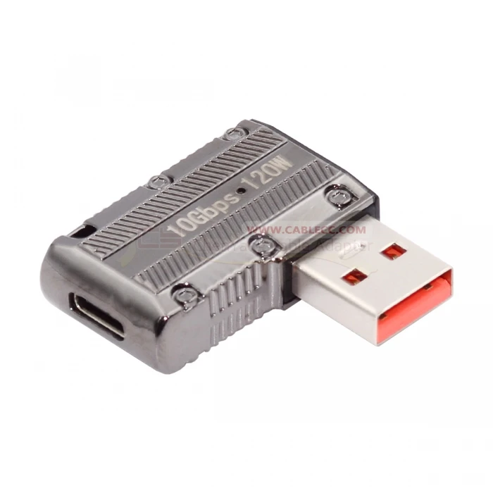 Adaptador de corriente de 90 grados en ángulo recto delgado tipo USB 3,1 tipo C hembra a USB 3,0 tipo A macho 10Gbps datos 120W