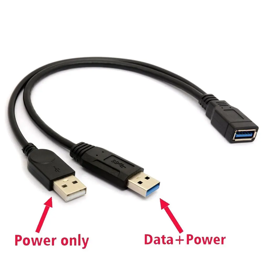 USB negro 3,0 hembra a doble USB macho Extra Power Data Y Cable de extensión móvil para disco duro de 2,5"