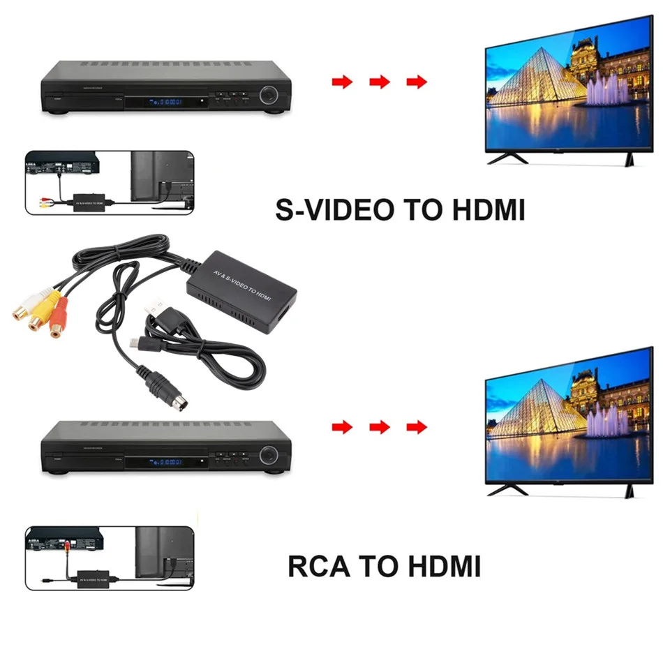 CVBS AV SVIDEO RCA A Adaptador compatible con HDMI para HDTV DVD STB, Compatible con PS2/ PS3, 1080P/720P AV convertidor de vídeo de la S-VIDEO