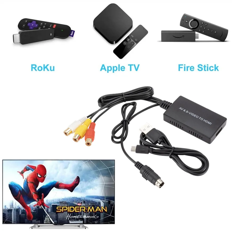CVBS AV SVIDEO RCA A Adaptador compatible con HDMI para HDTV DVD STB, Compatible con PS2/ PS3, 1080P/720P AV convertidor de vídeo de la S-VIDEO