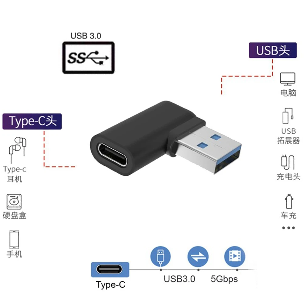 Adaptador de datos de carga USB3.1 de codo lateral de 90 grados tipo c USB-C hembra par 3,0 macho arriba, abajo, izquierda, derecha adaptador PD para teléfono móvil
