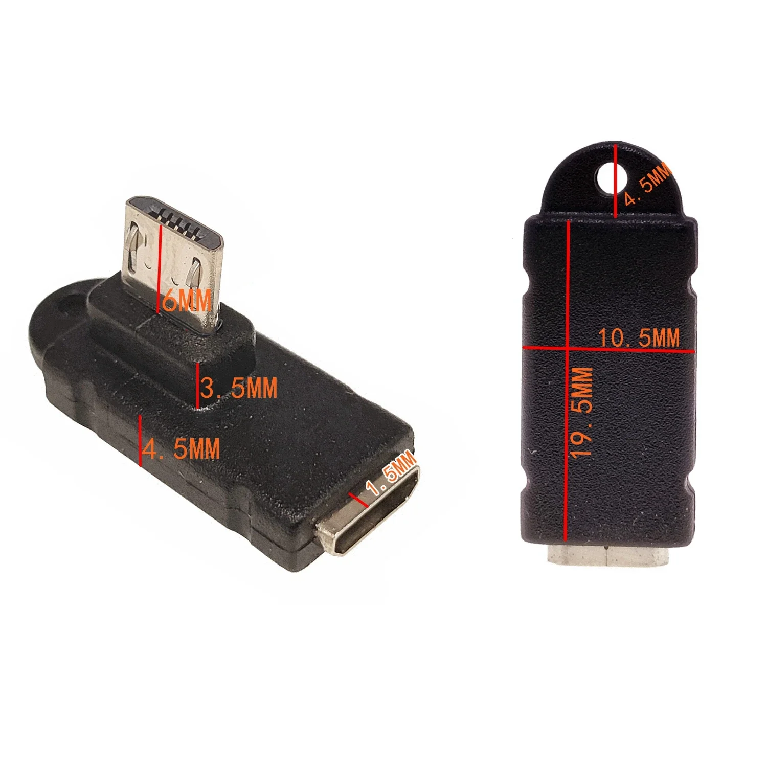 Adaptador de datos micro USB conector macho a hembra, conector hembra a micro USB macho de 5 pines, esquinas izquierda y derecha, 90 grados