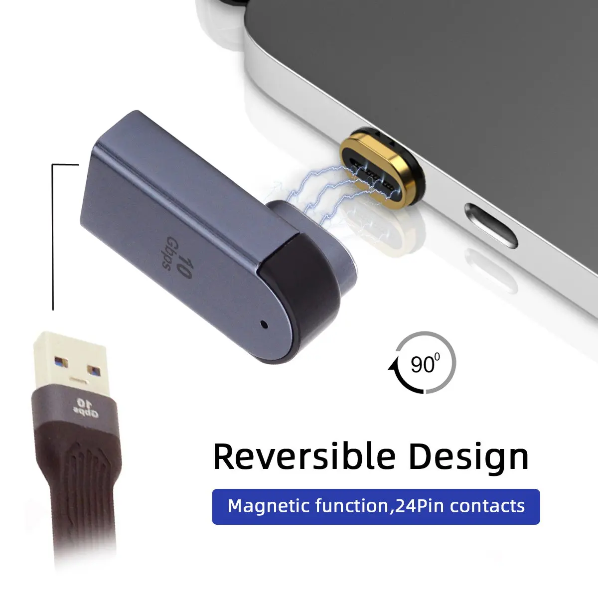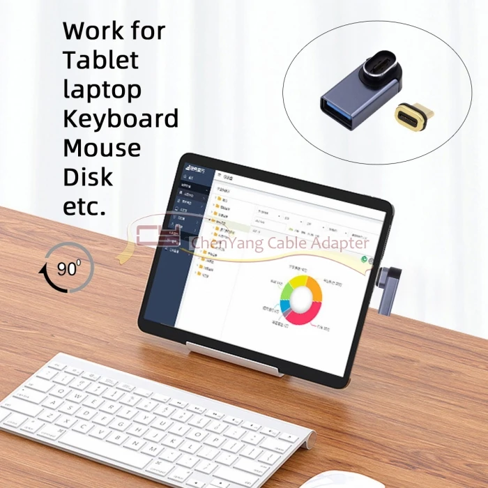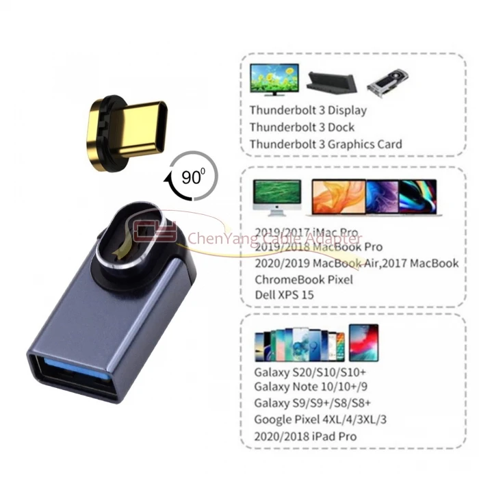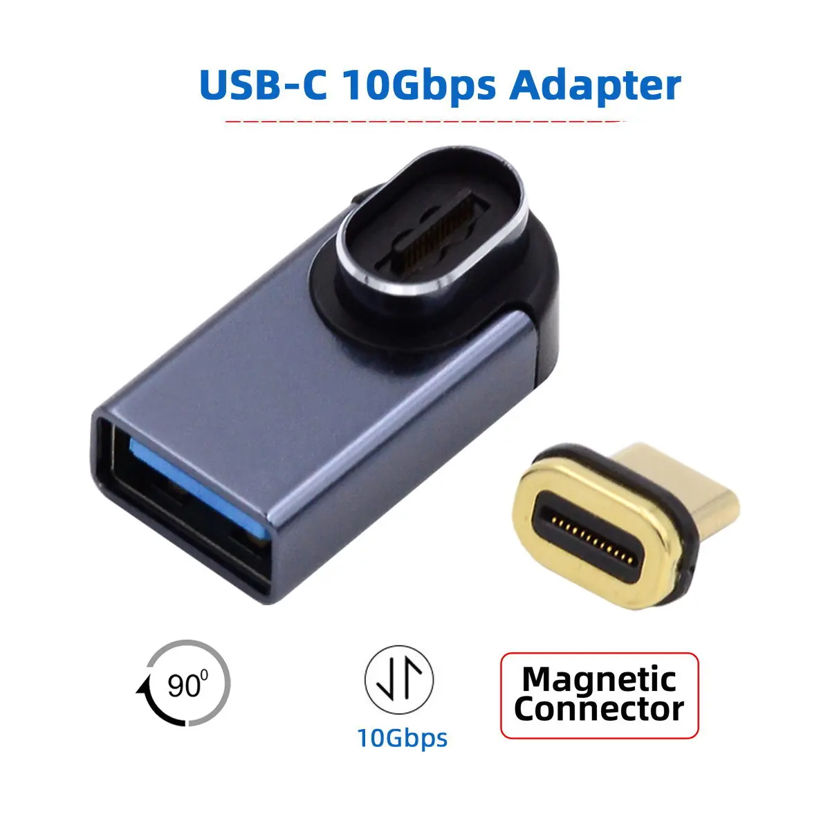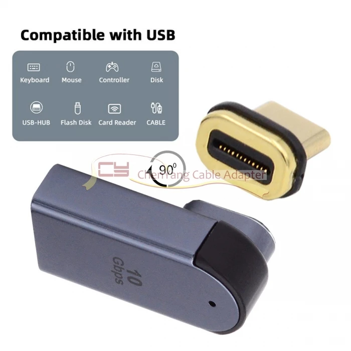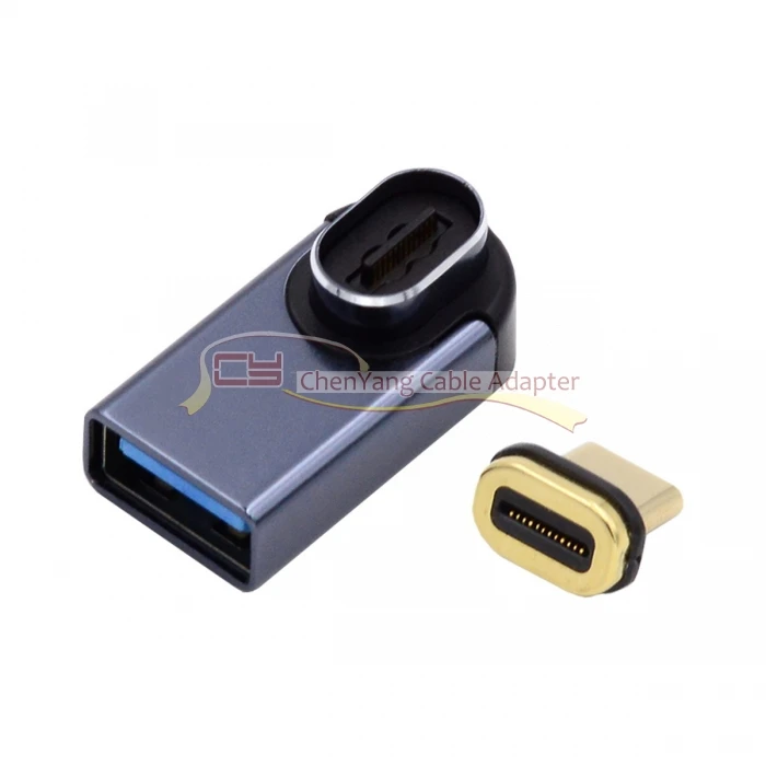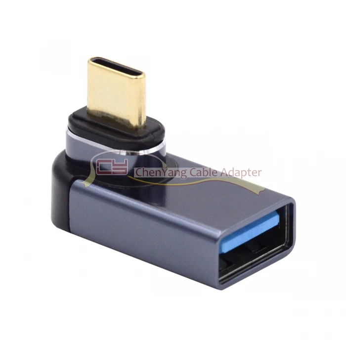 Conector magnético 10Gbps tipo C macho a USB3.0 hembra adaptador de datos OTG en ángulo de perfil bajo de 90 grados