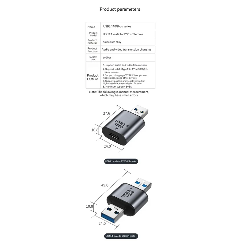 Lista de paquetes: 1 Adaptador de datos OTG USB3.1 a tipo C (la imagen principal solo para su referencia).