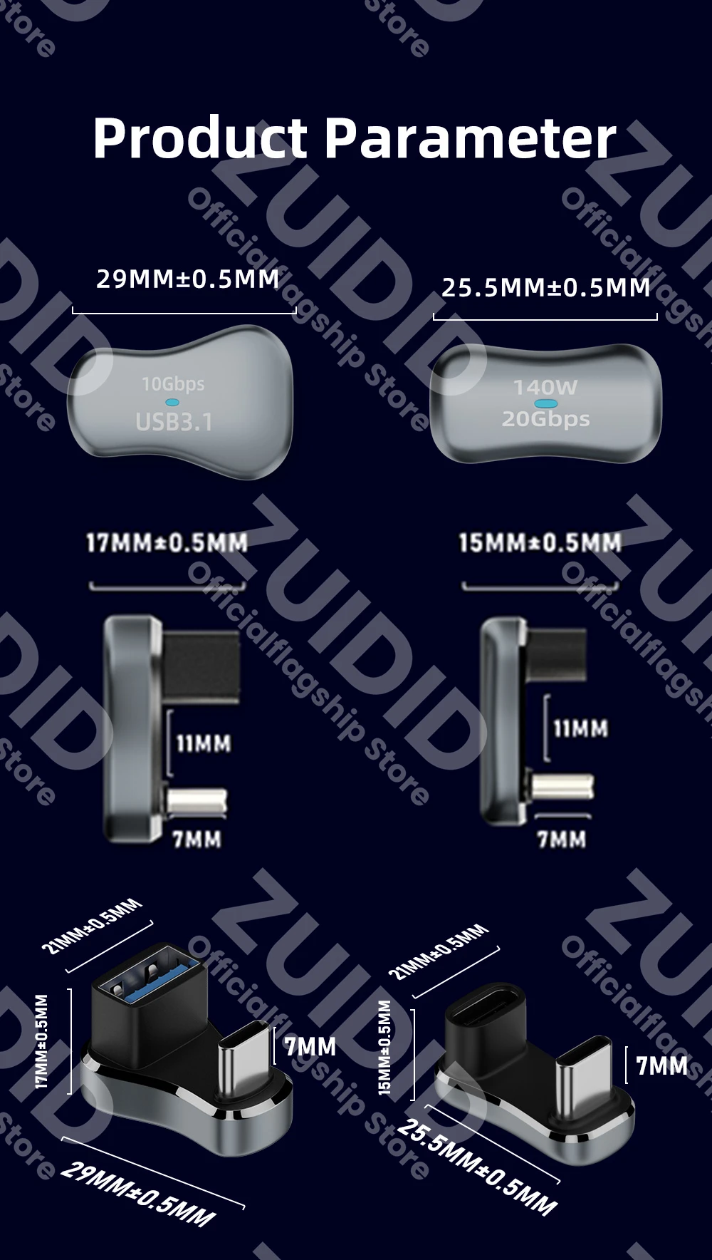 Comprar Adaptador de datos USB4.0 ThunderBolt 3, 20Gbps, 4K @ 60Hz, 140W, 5A, USB C a tipo C, adaptador convertidor de carga rápida para Macbook Steam Deck