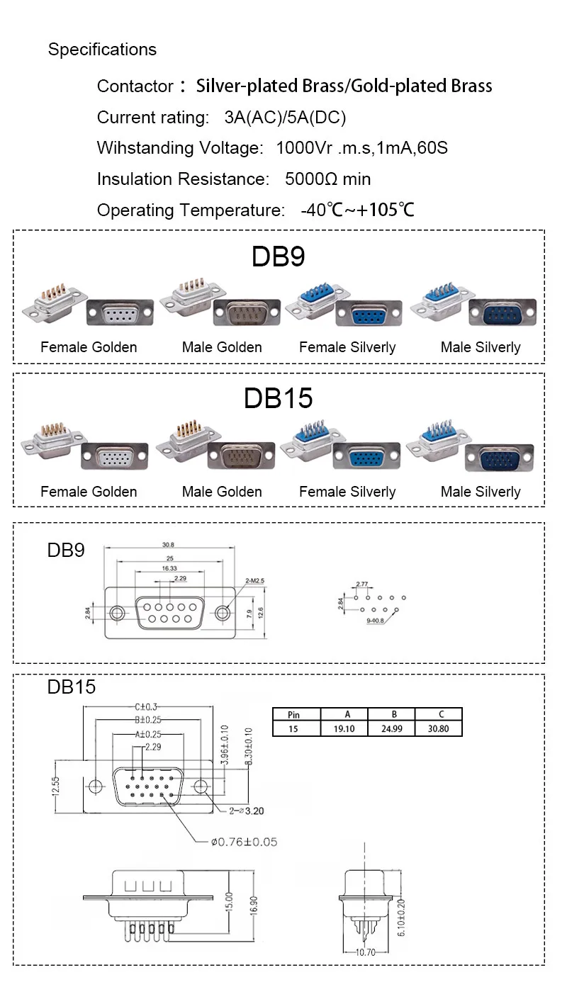 Comprar Adaptador DB9 de 10 piezas, conector Core RS232 Serial COM, Agujero/pin DB15 hembra, Puerto macho, D Sub DP9, caja de plástico
