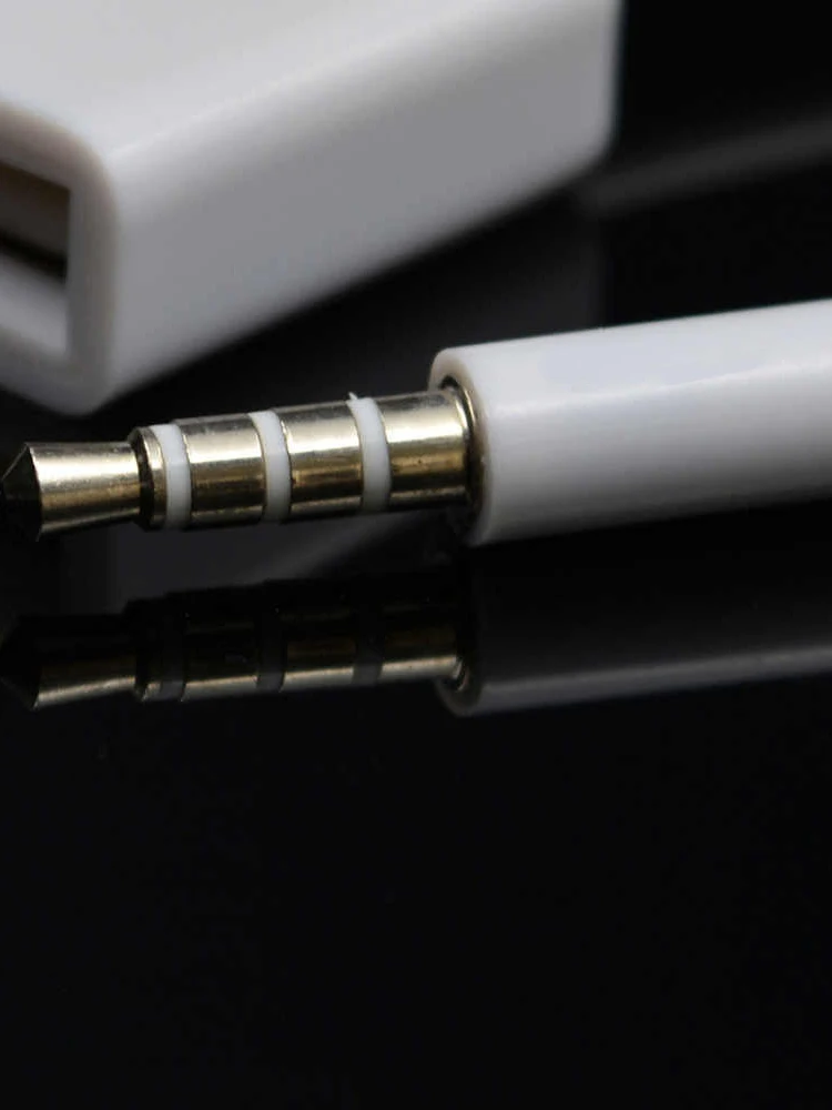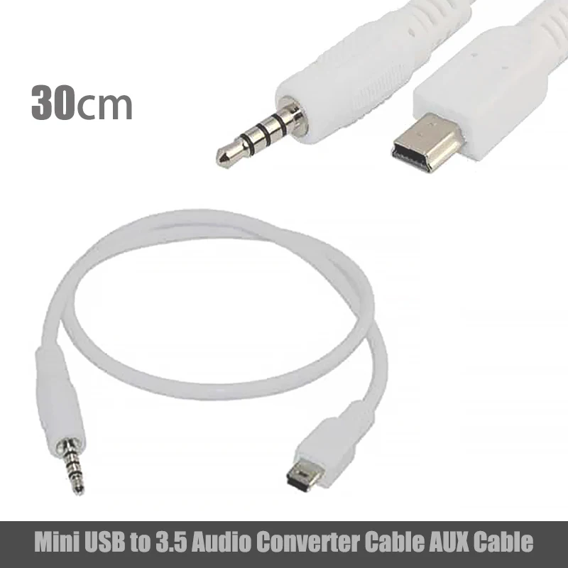 Adaptador de decodificador de lector AUX a USB montado en coche blanco, Cable de música, Cable de Audio de cabeza redonda, Cable de conexión Mini USB a 3,5 MMAUX