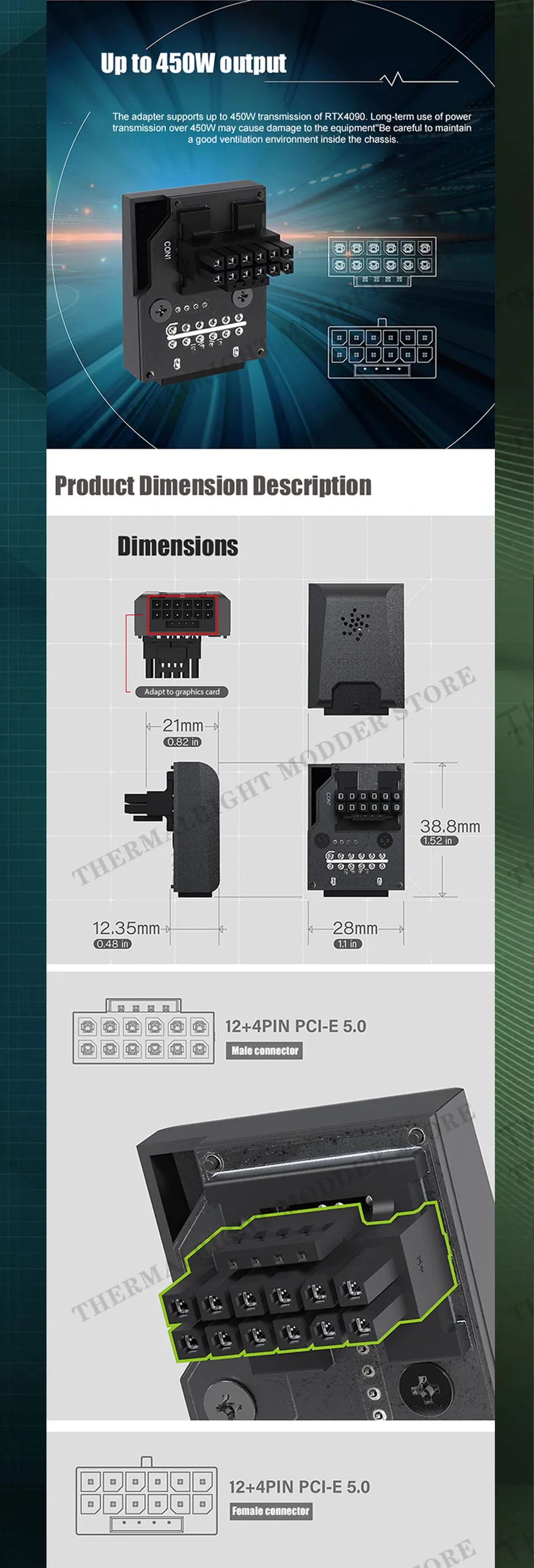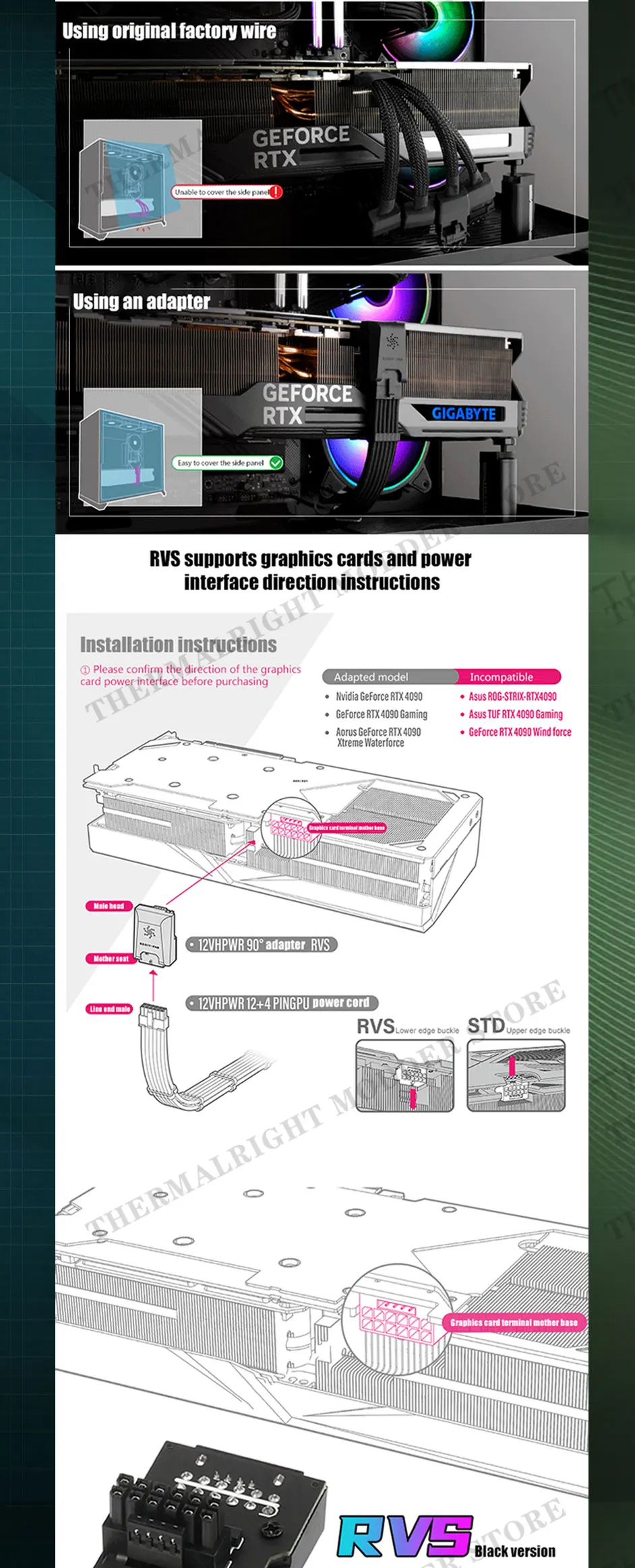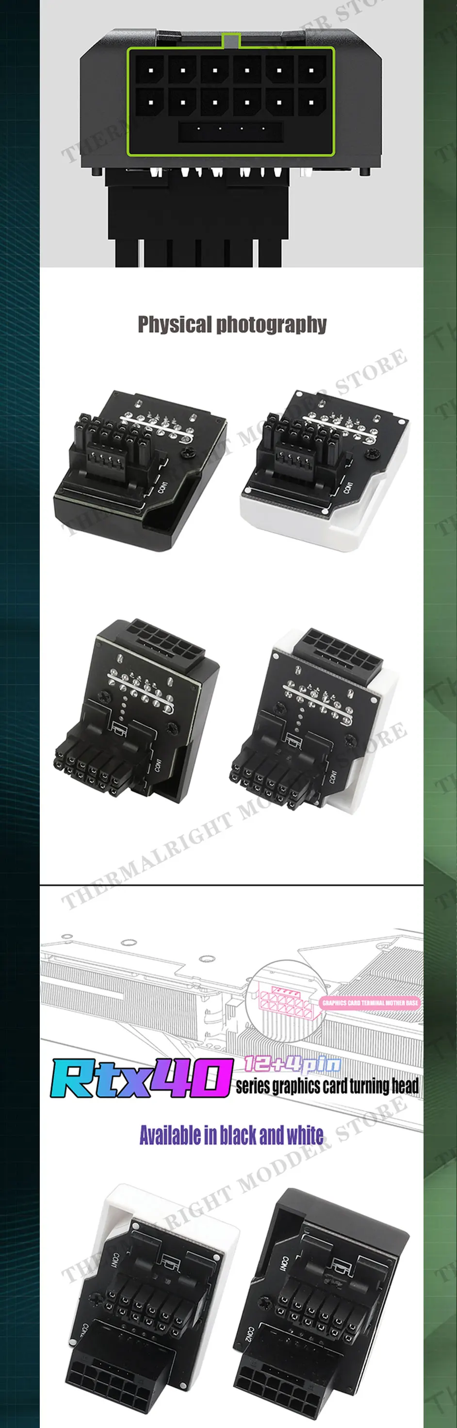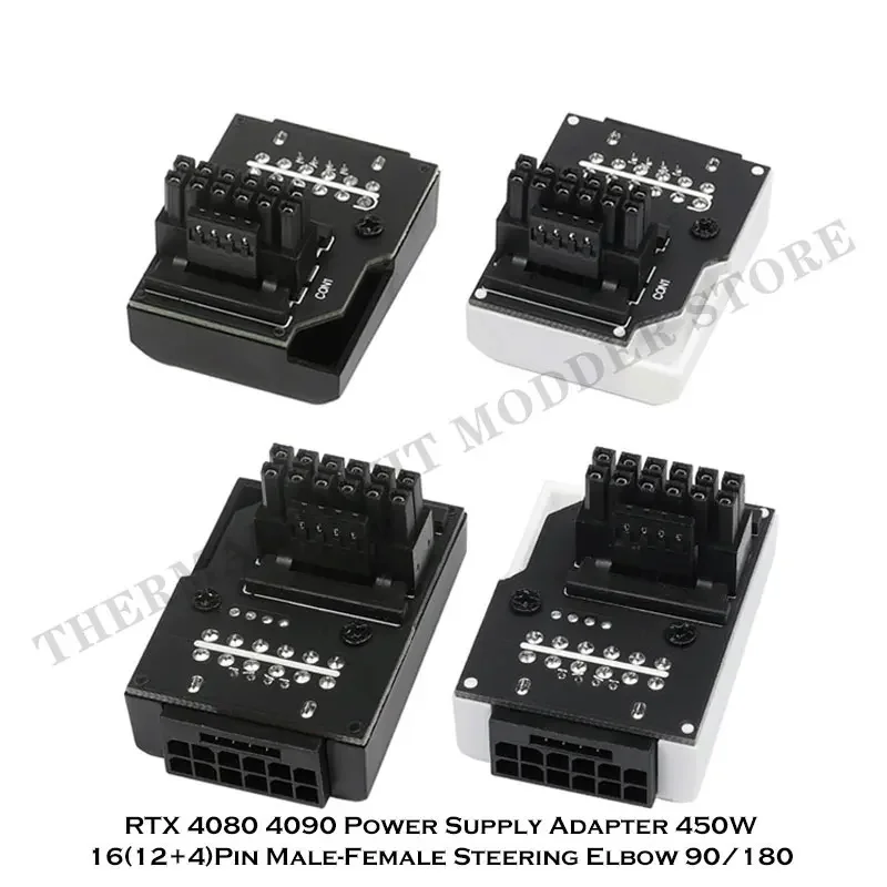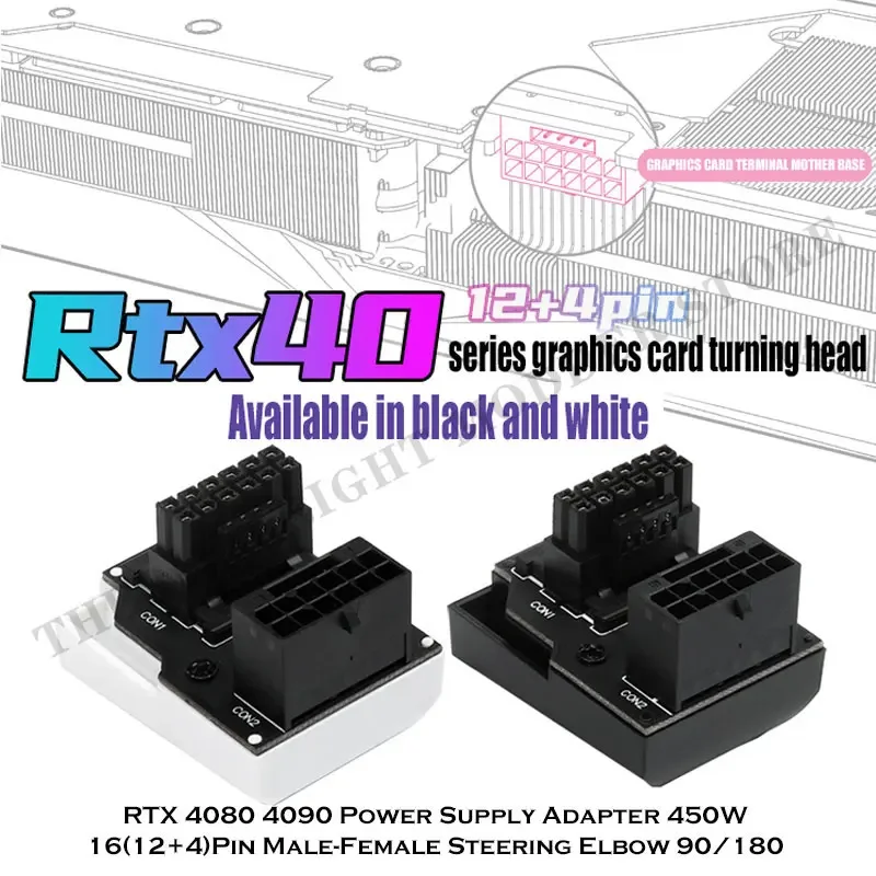 Comprar Adaptador de dirección RTX 40S PSU 12VHPWR PCI-E 5,0 12 + 4 pines sintonización conexión cableado artefacto 90 ° 180 ° Negro/Blanco 450W