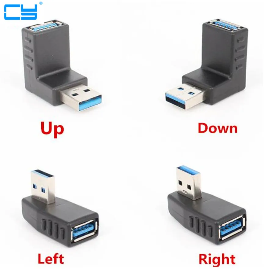 Comprar Adaptador de diseño de ángulo recto, conector macho A hembra, tipo A, izquierda, derecha, arriba y abajo, USB 3,0 90, lote de 5 piezas