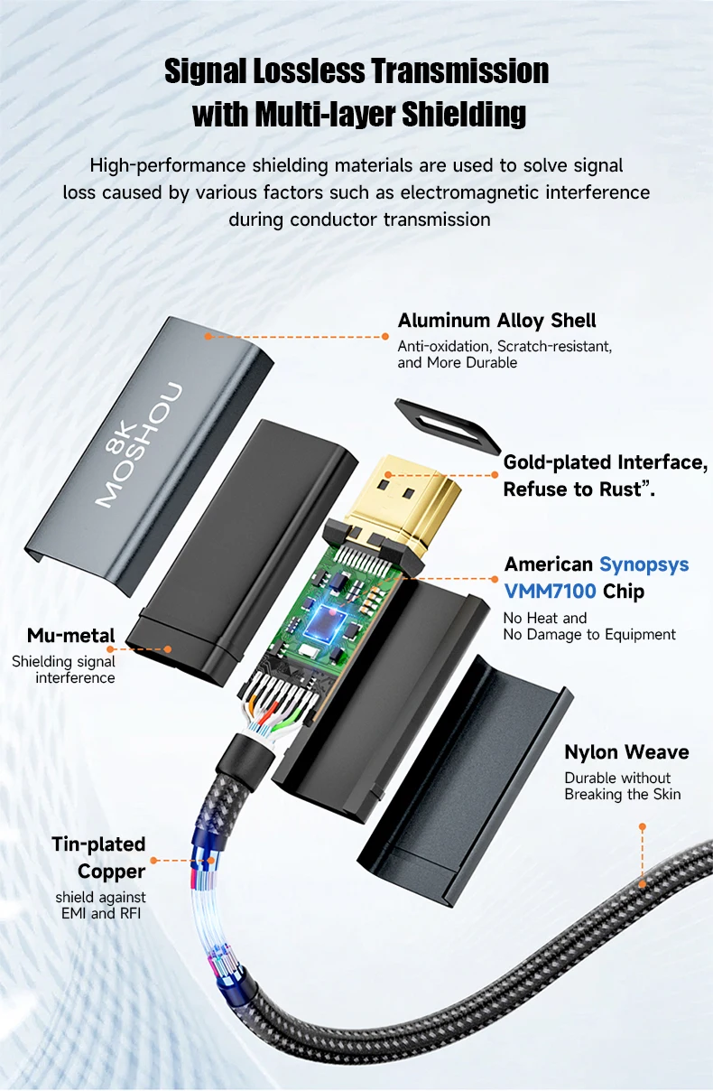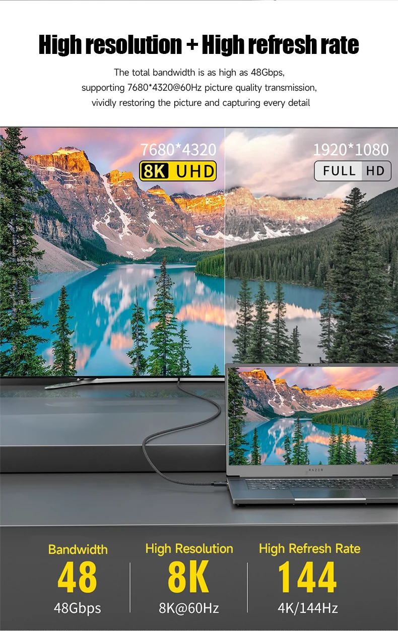El ancho de banda total es tan alto como 48Gbps, compatible con transmisión de calidad de imagen de 7680*4320 @ 60Hz, restaurando vívidamente la imagen y capturando cada detalle