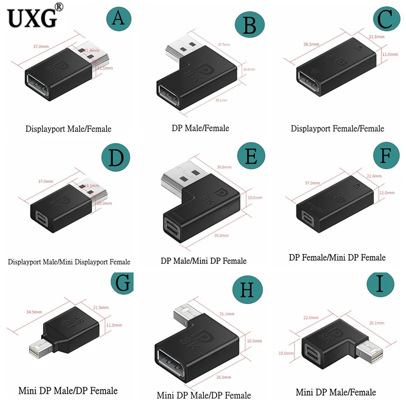 Comprar Adaptador Displayport de 1,4 V a Mini DP en ángulo recto DP 8k/60Hz 4k/ 2K/165Hz, convertidor Displayport 1,4, ángulo de 90 grados