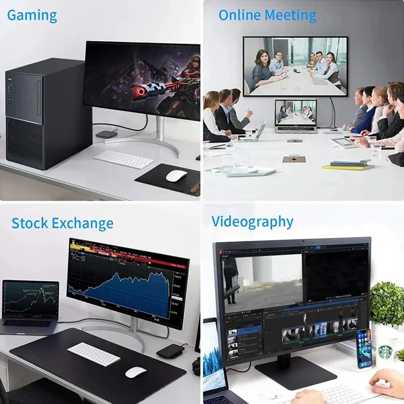 Plug & Play: el adaptador se usa ampliamente en conferencias, aulas, talleres domésticos, etc. para hablar, enseñar y ver películas en una pantalla grande con imágenes/vídeos excelentes nítidos. Puede compartir ideas en una pantalla más grande con sus socios.