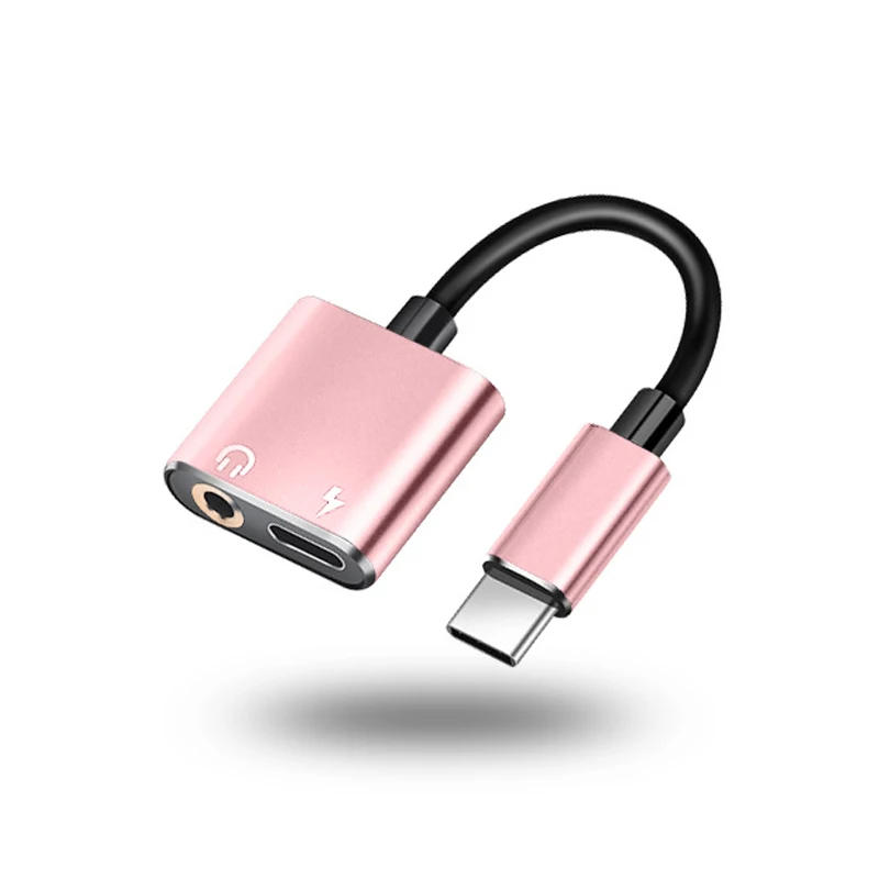 Comprar Adaptador divisor de Audio 2 en 1 Tipo C para auriculares, convertidor de carga con conector USB C a Jack de 3,5mm, para Xiaomi 8, 9, Huawei, Samsung